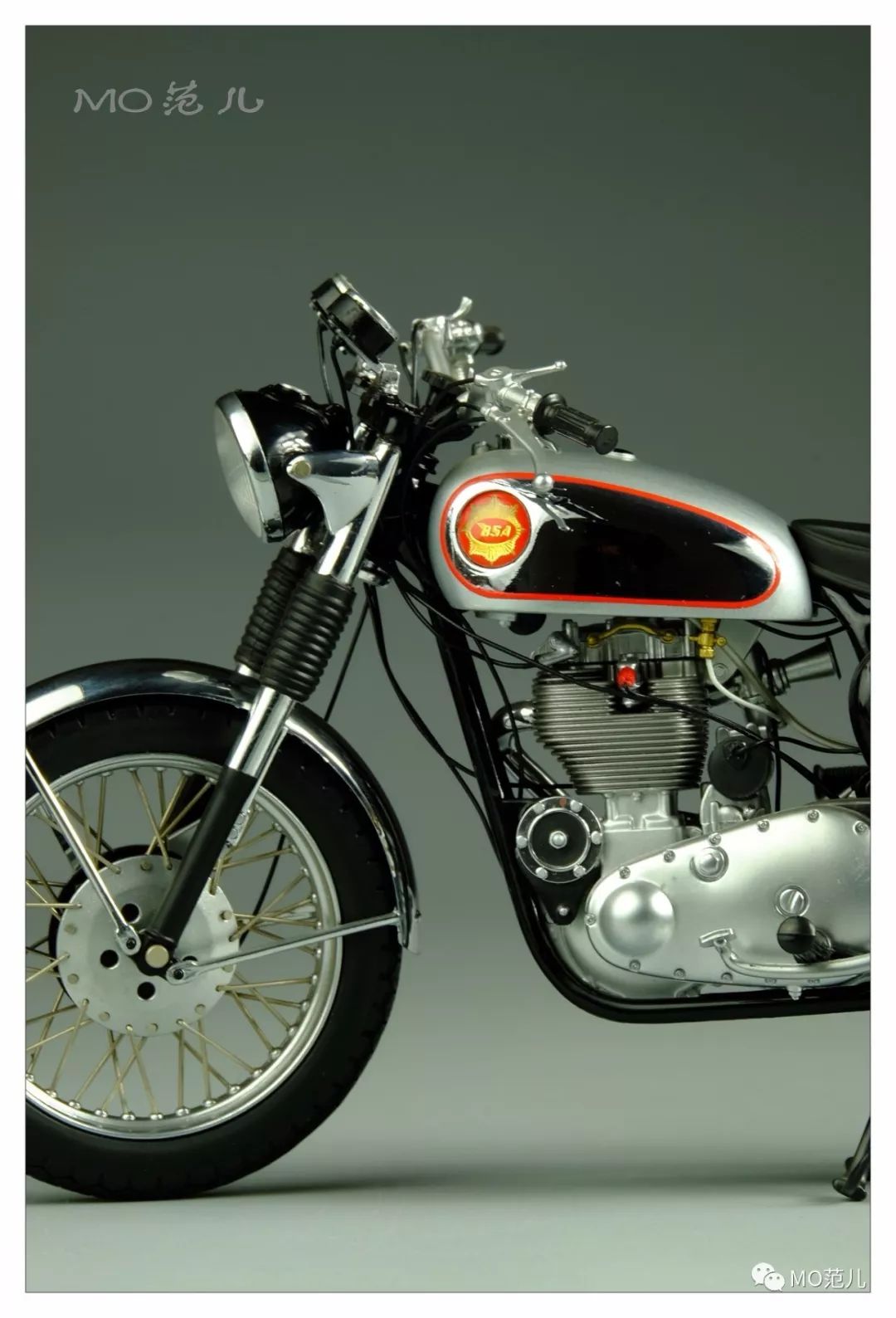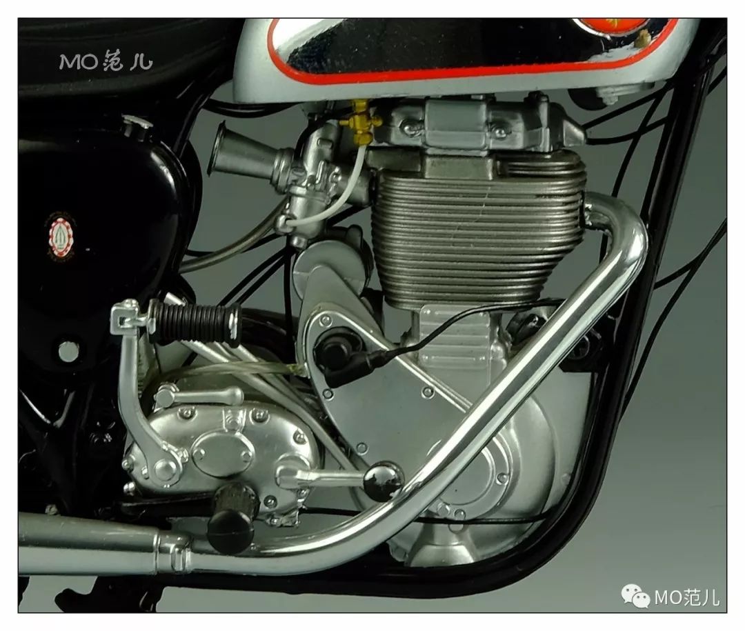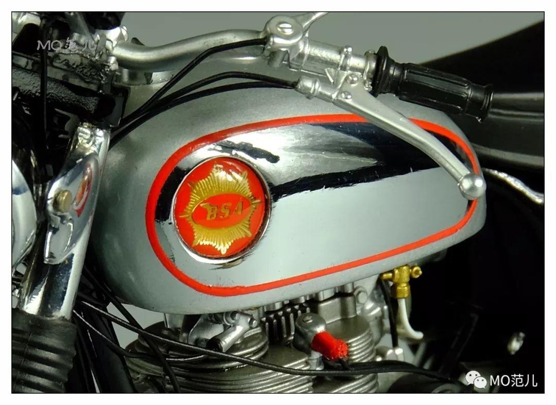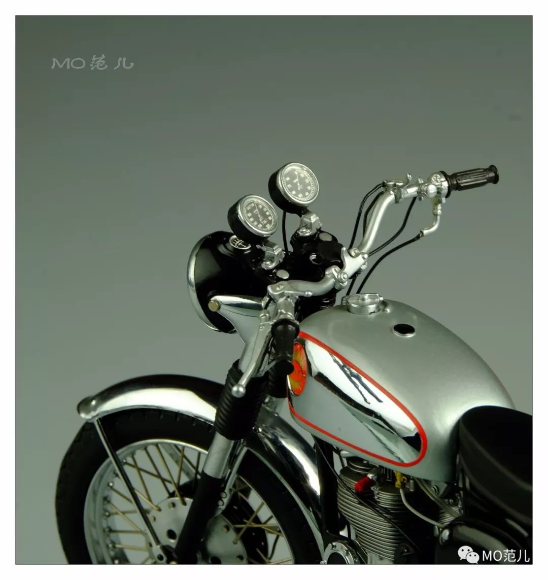 亮銀色的油箱,側(cè)面電鍍處理像鏡子般的閃耀,這種設(shè)計是那個時代的時尚風(fēng)潮,英國、德國甚至全歐洲都刮起了這股風(fēng)……