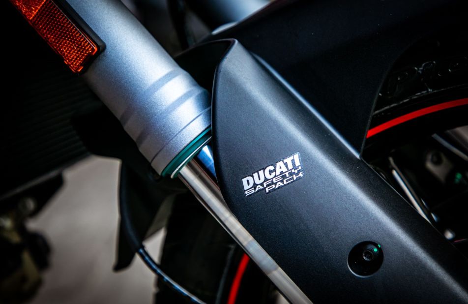 新的Multistrada 950車系還獲得了電控系統(tǒng)的全面升級(jí),基于博世IMU慣性傳感器,Multistrada 950標(biāo)配了杜卡迪GTC牽引力控制系統(tǒng)以及博世的彎道ABS系統(tǒng),讓騎手在彎道中激情劈彎時(shí),即便遇到意外狀況也能在彎道中放心大膽的進(jìn)行制動(dòng)避讓,極大提高了安全性。另外電控系統(tǒng)還有著剎車聯(lián)動(dòng)功能,智能分配前后輪制動(dòng)力,得到最大制動(dòng)效能。制動(dòng)配置方面前制動(dòng)采用雙Brembo對(duì)向四活塞輻射式卡鉗搭配320mm雙浮動(dòng)盤,后制動(dòng)采用Brembo雙活塞卡鉗配265mm制動(dòng)盤,配合Brembo直推式上泵,這樣的制動(dòng)組合可以輕松剎停這臺(tái)236kg的猛獸。同時(shí)駐車控制系統(tǒng)在坡道時(shí)也能提供良好的安全輔助作用。
