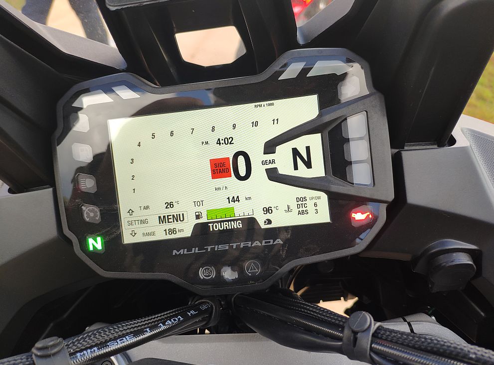 Multistrada 950 S還配備了DQS杜卡迪雙向電子快速換擋系統(tǒng),這也是杜卡迪賽車的技術(shù)下放,允許騎手在不收油、不捏離合的情況下進(jìn)行加減檔操作。在激烈駕駛時(shí)帶來更極致的體驗(yàn)和便利,需要注意的是,在比較柔和的駕駛方式下,低擋位時(shí)使用快速換擋會(huì)有一定的頓挫,這種情況下可以使用手動(dòng)以獲得更平順的換擋感受。另外Multistrada 950普通版同樣可以選裝DQS這項(xiàng)配置。DCL杜卡迪彎道輔助照明系統(tǒng)和全LED大燈的配置為Multistrada 950 S裝上了更明亮的眼睛,彎道照明系統(tǒng)同樣是根據(jù)博世IMU系統(tǒng)隨時(shí)監(jiān)測(cè)車輛傾角,優(yōu)化彎道時(shí)的照明效果。除此之外,Multistrada 950 S版還有著全新的5英寸TFT彩色液晶儀表、定速巡航系統(tǒng)以及無鑰匙啟動(dòng)等諸多科技配置。