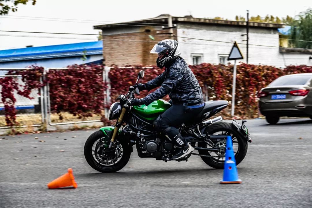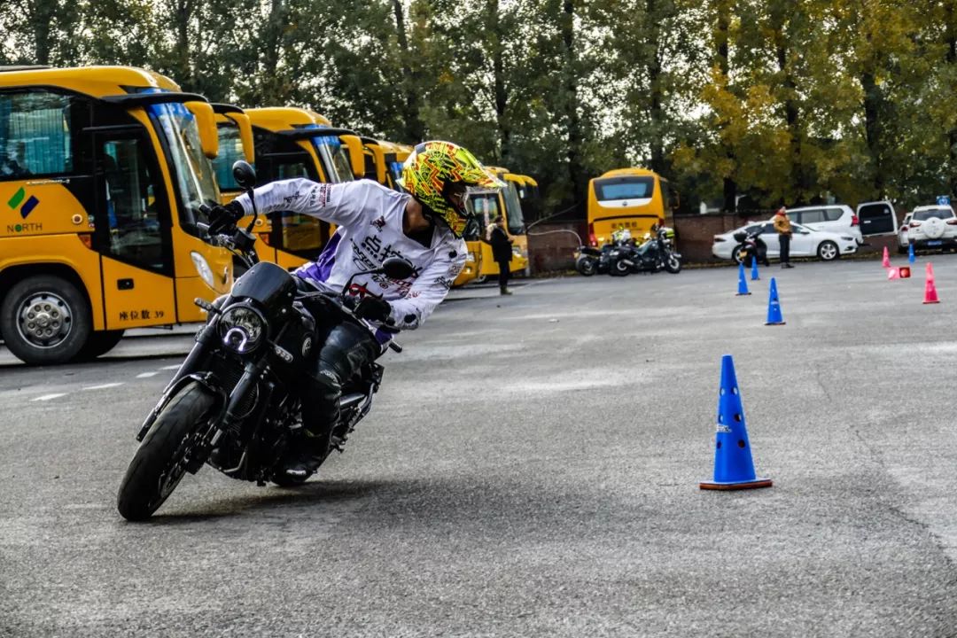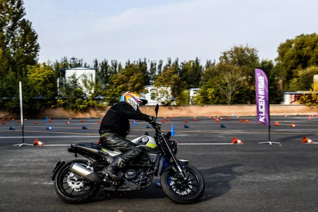 簡單試駕過后由點控團隊的培訓師進行現(xiàn)場演示,他們采用的是同傾騎姿,雙腿夾緊油箱,配合細膩的油門控制、視線以及大量金卡納騎行方式。