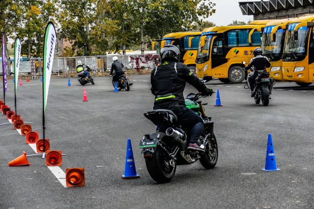 場地外圈為簡單繞樁騎行試駕場地,為保證安全,禁止進行超車,大家井然有序的對自己想要了解的車型進行試駕。