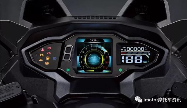 MAXSYM TL使用4.5寸TFT全彩儀表,可根據(jù)光線自動(dòng)調(diào)節(jié)亮度,并且可以顯示水溫和電壓,臺(tái)規(guī)版還配有TPS胎壓監(jiān)測(cè)功能,同樣是臺(tái)規(guī)版專屬的還有Keyless免鑰匙啟動(dòng)功能。