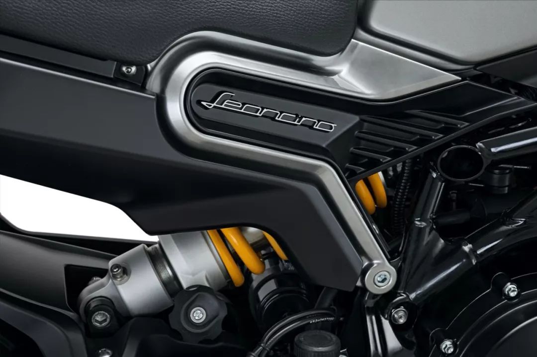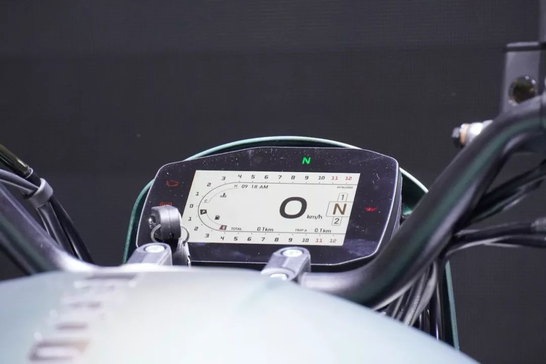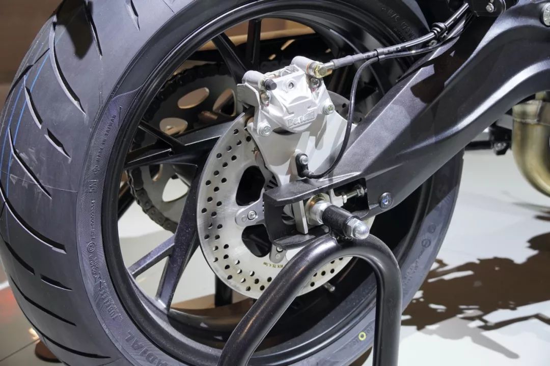 在配置上,使用直徑50mm 壓縮阻尼、回彈阻尼、彈簧預(yù)載可調(diào)的MARZOCCHI倒立式前減震,后中置減震預(yù)載可調(diào)。
