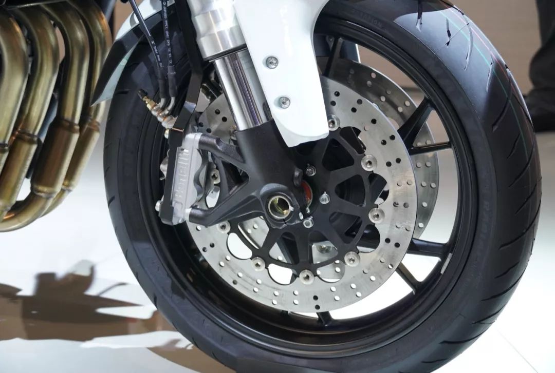 前制動(dòng)為對(duì)向四活塞卡鉗+320mm浮動(dòng)式雙碟剎盤,后制動(dòng)為對(duì)向四活塞卡鉗+260mm碟剎盤,標(biāo)配ABS。