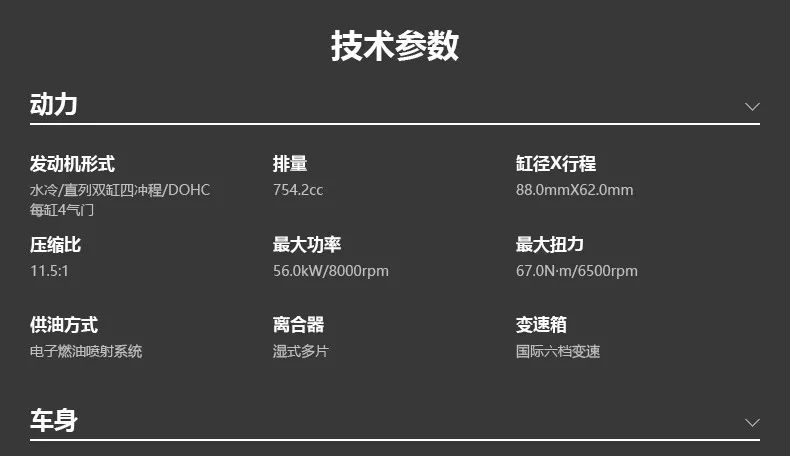 幼獅800搭載的是一臺(tái)754cc水冷直列雙缸8氣門DOHC發(fā)動(dòng)機(jī),在8000轉(zhuǎn)時(shí)達(dá)到56kW的最大功率,6500轉(zhuǎn)時(shí)達(dá)到67N.m的最大扭矩。