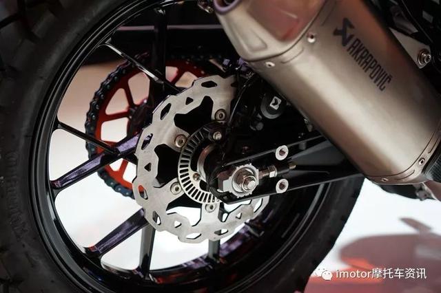 制動方面,采用前320mm碟盤搭配四活塞徑向卡鉗,后230mm碟盤配雙活塞卡鉗。雙通道ABS,具有關(guān)閉后ABS的越野模式。配備可調(diào)WP APEX 43 mm倒置前叉,減震器前后行程分別為170mm和177mm。前/后輪胎尺寸為100/90-19,130/80-17。