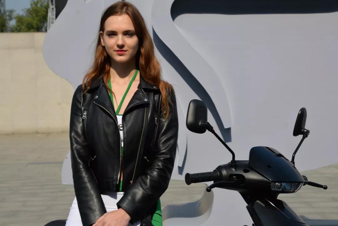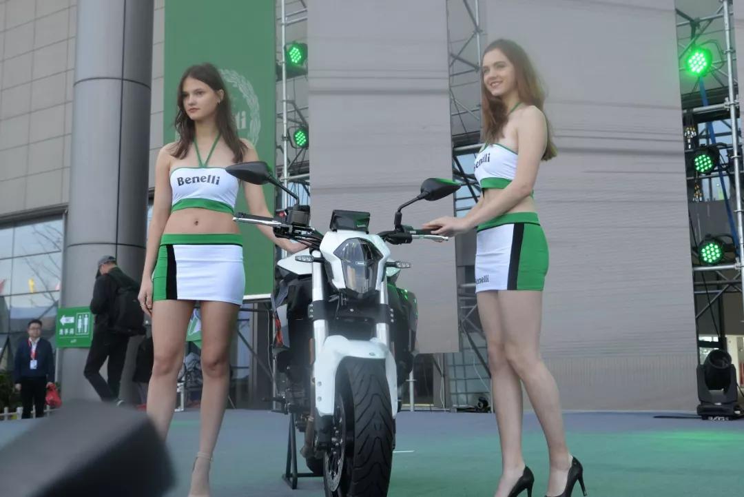 大獅子旁的Model,貝納利新款電摩,米蘭參展的就是這兩臺。