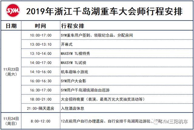 核心提示:11月23日 浙江千島湖燃擎賽車主題公園SYM 2019重車大會師快樂騎行 騎聚千島湖為回饋長期以來支持三陽重車的車友們SYM誠摯邀請大