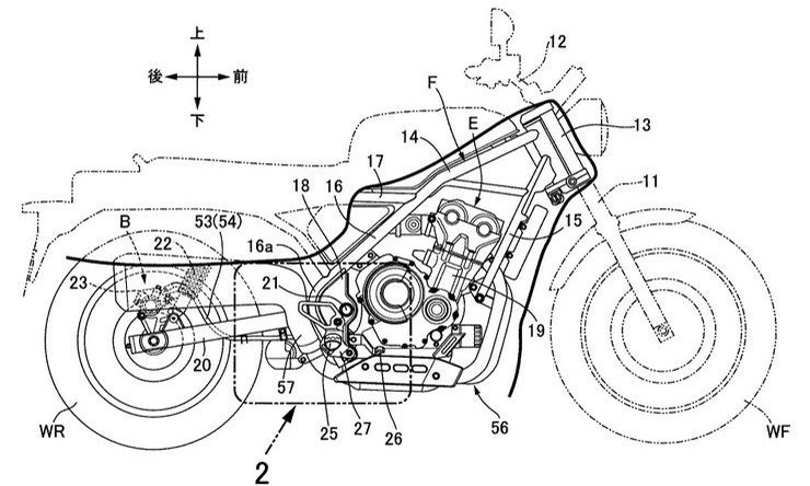 近日,據(jù)日本知識產(chǎn)權(quán)局公布的信息,本田剛剛提交了一款采用Retro Scrambler風(fēng)格的新設(shè)計(jì),使用的是現(xiàn)有500cc發(fā)動機(jī)。