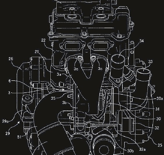 在目前的市售量產車當中,也僅有川崎的H2采用了機械增壓的發(fā)動機,至于Turbo摩托車能量產發(fā)動機還停了留在設計圖上,根據上次所曝光的信息,鈴木此款發(fā)動機為中量級排量。