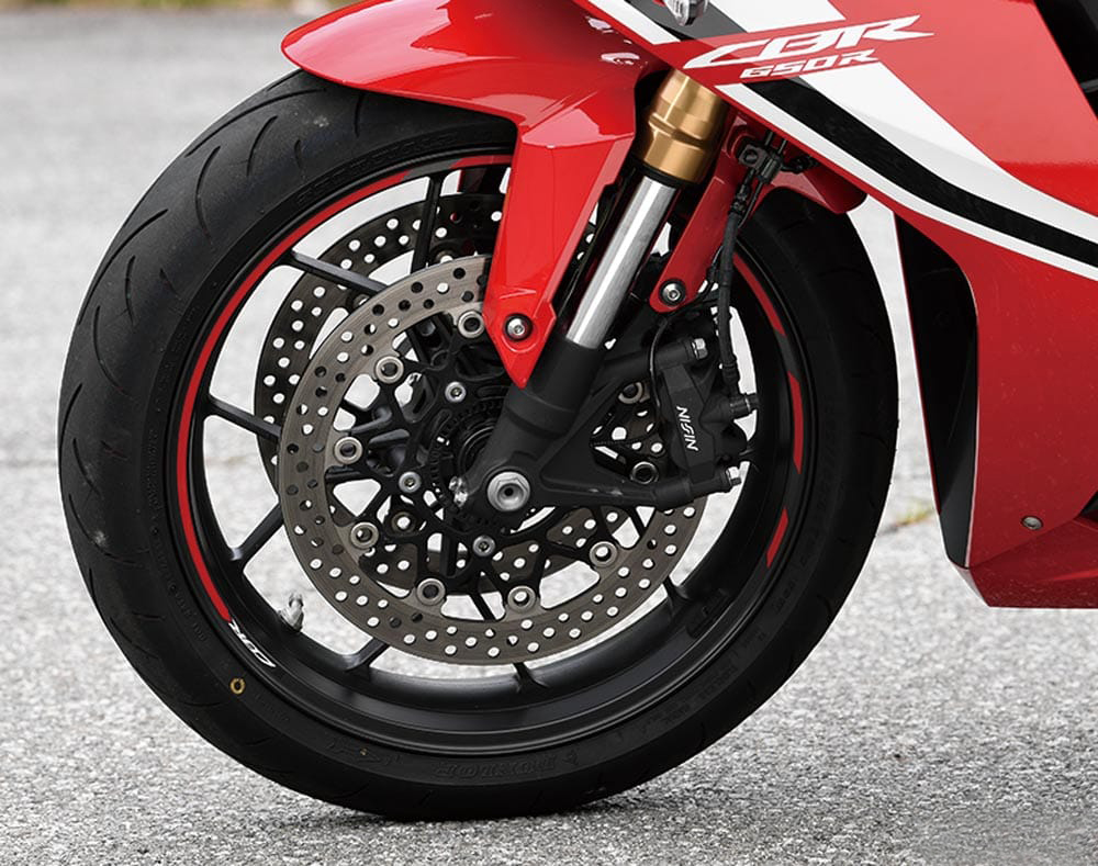 軸距比CBR1000RR長(zhǎng)45mm,對(duì)操作和轉(zhuǎn)向能力的反應(yīng)并不很快,但這也是易于操作的來(lái)源,前叉和無(wú)連桿后避震器在日常駕乘使用中,不會(huì)讓你感到任何不滿。