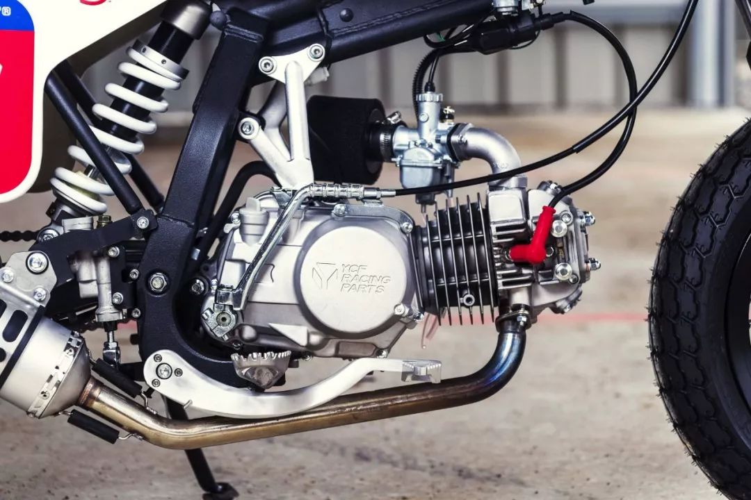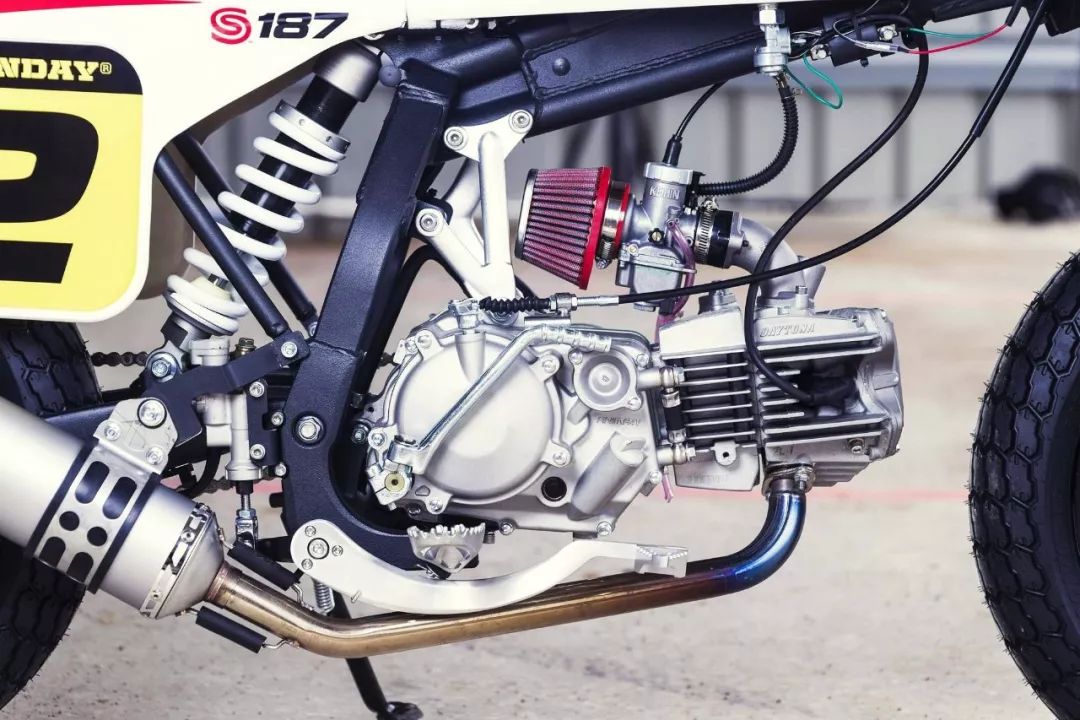 S187 搭載一副來自日本著名改裝品牌 Daytona 的風冷臥式單汽缸發(fā)動機,排汽量 187 cc,配備了一具 Keihin 的 PE28 化油器,最大動力輸出 24 匹。車體采用了鋼制的車架,YCF 的后減震,14 英寸直徑的前后輪框,鋁制的越野式腳踏,直徑為 200 mm 的后剎車碟,原廠并提供包括不同色彩的油箱、車頭號碼牌,貼花、CNC 金屬組件等等的大量選裝件。