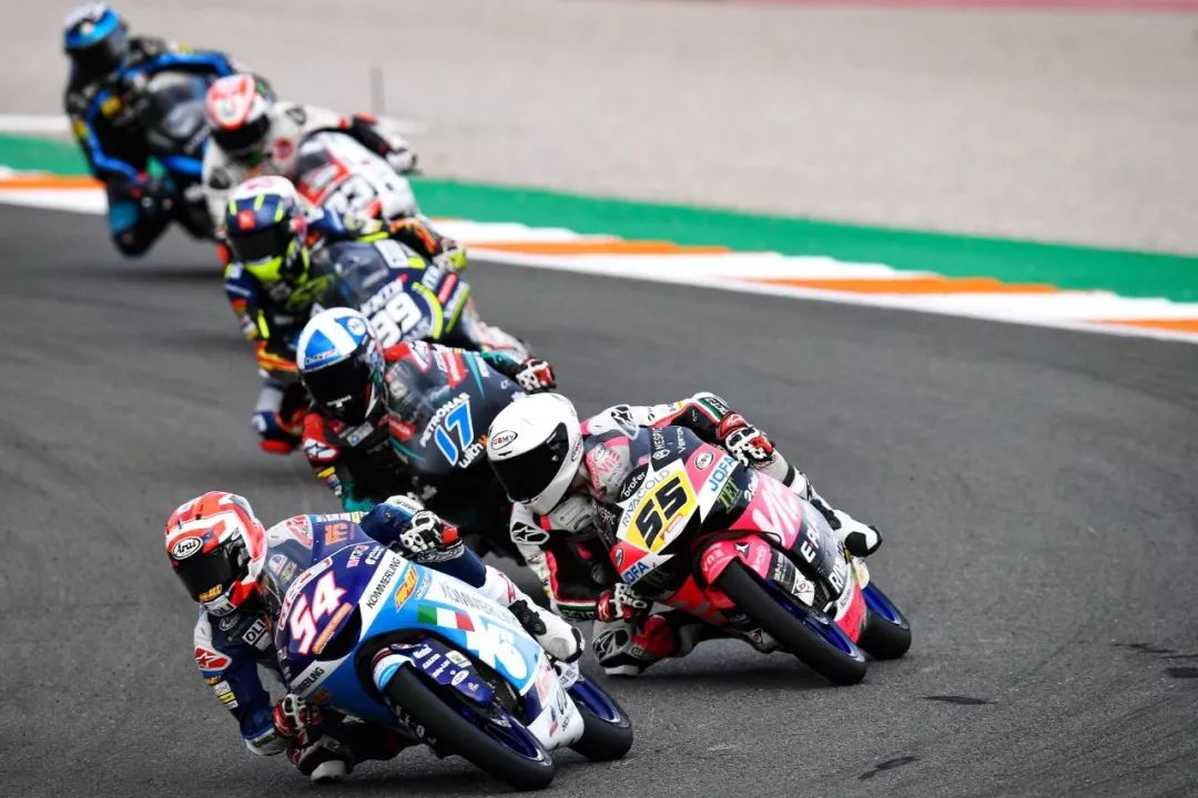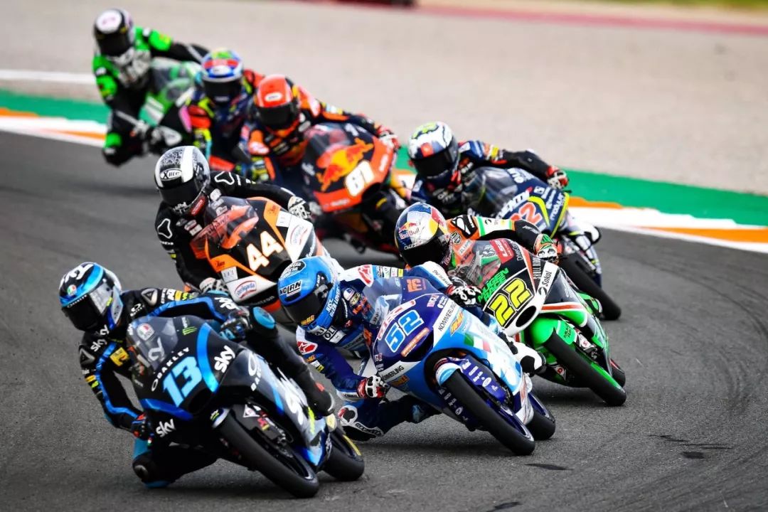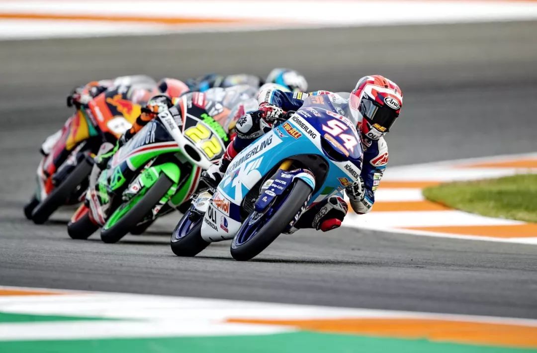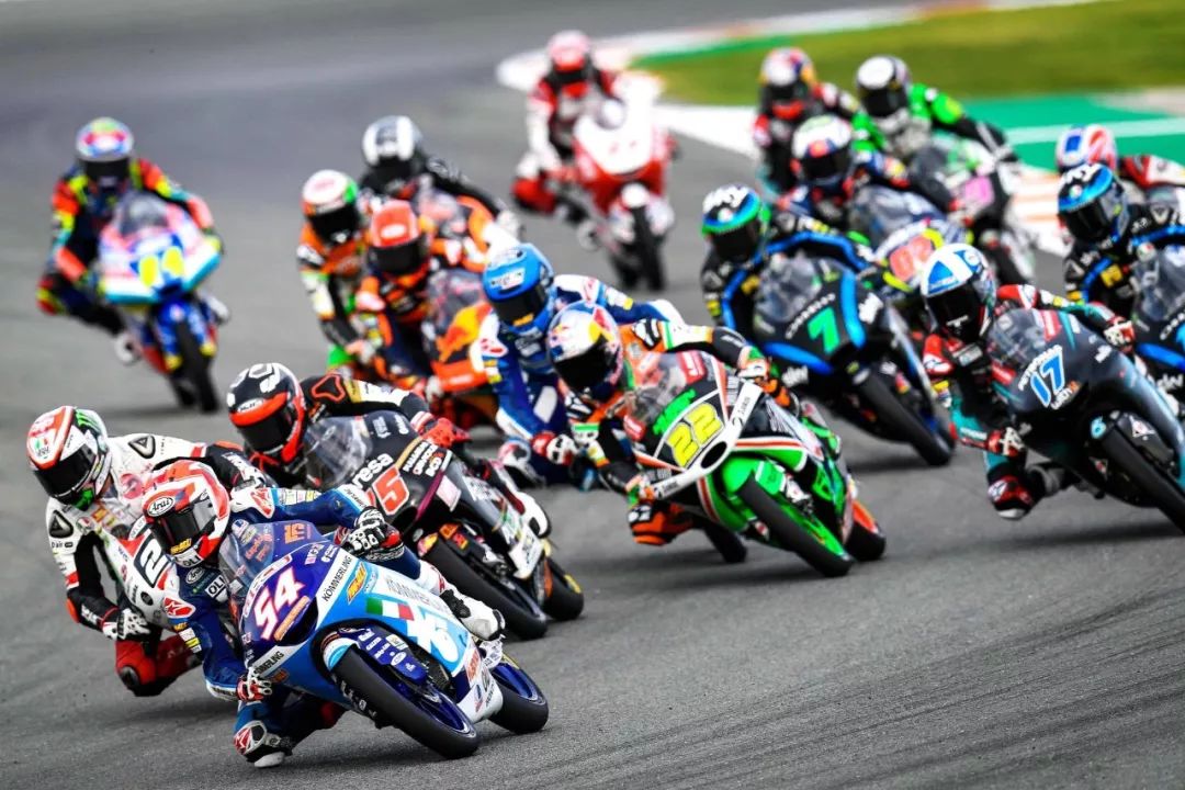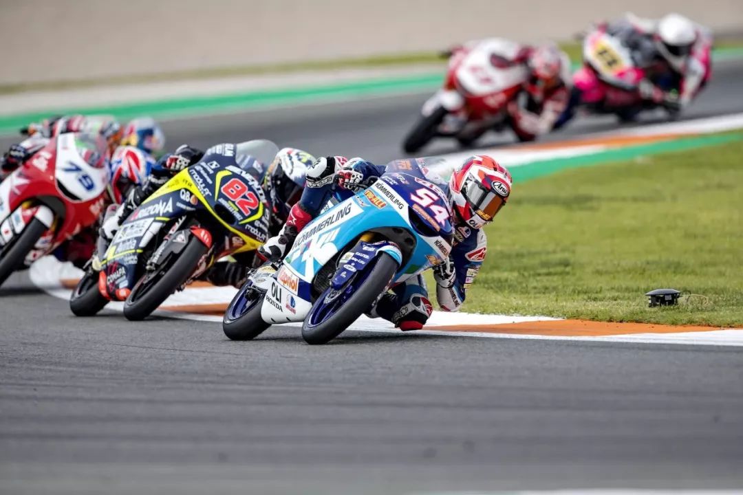 Moto3 級別的賽程是 23 圈,比賽在熱身圈就已經(jīng)發(fā)生了意外、導(dǎo)致正式比賽的起步被推遲,競爭之激烈可見一斑。