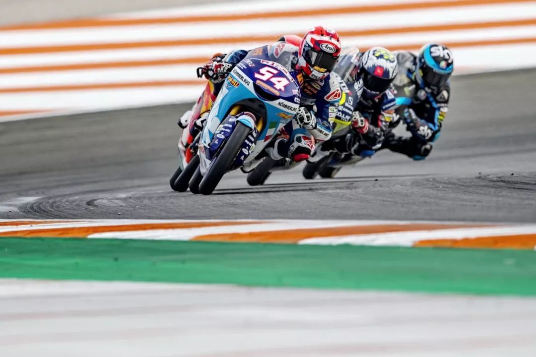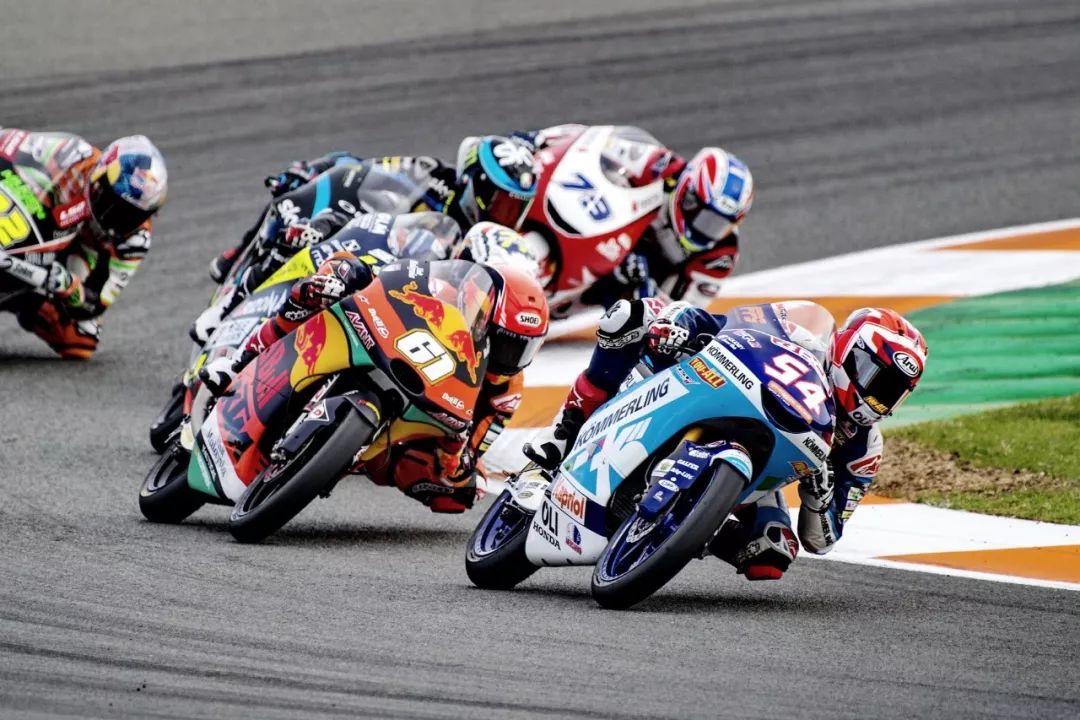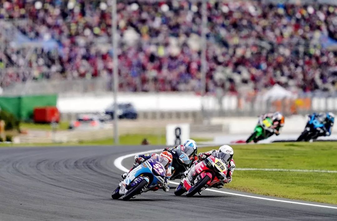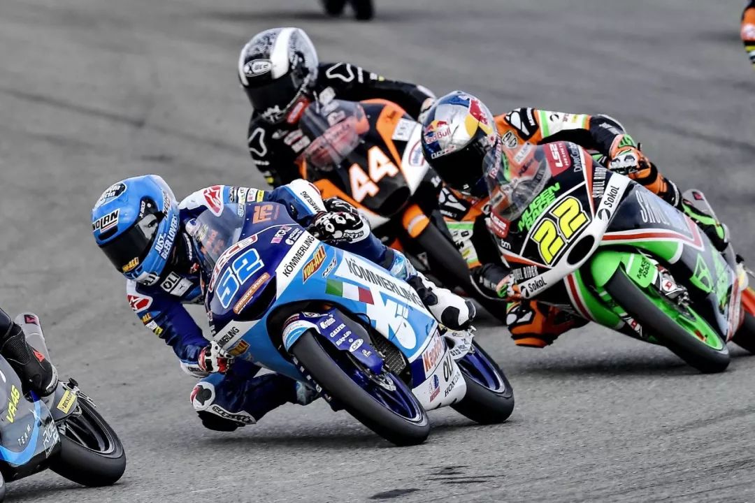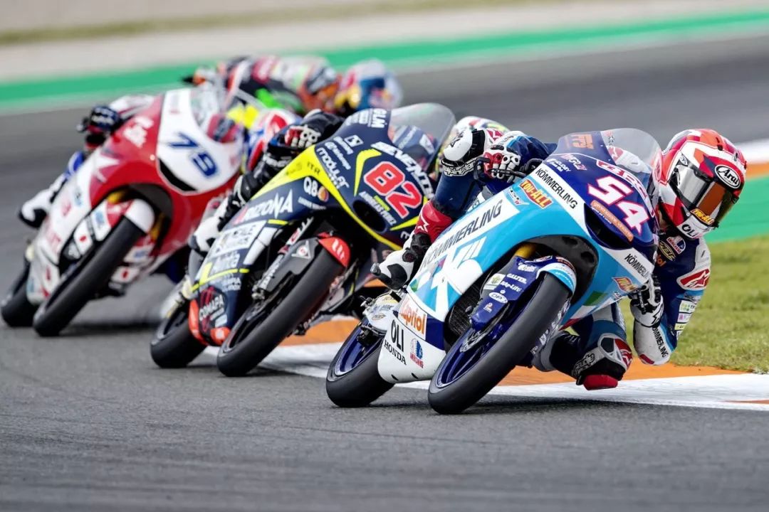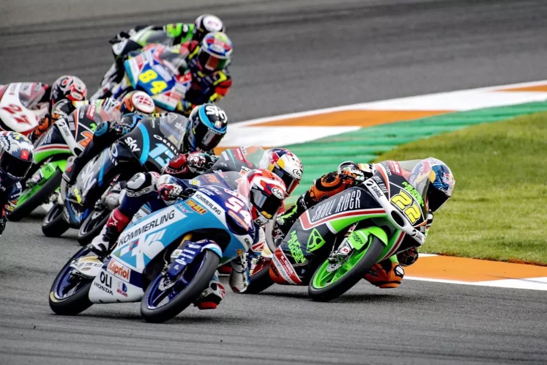 Moto3 級別的賽程是 23 圈,比賽在熱身圈就已經(jīng)發(fā)生了意外、導(dǎo)致正式比賽的起步被推遲,競爭之激烈可見一斑。