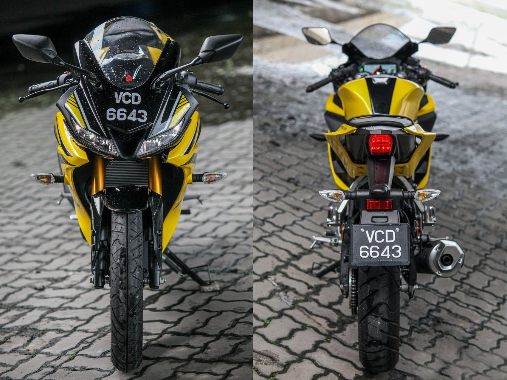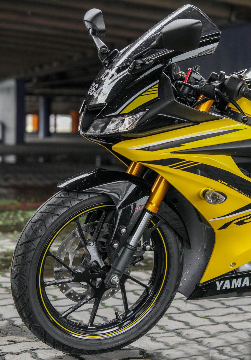 輪胎的尺寸也趨向于賽車意圖,后輪配備了這個級別少見的140 / 70-17輪胎,而全輪也有100 / 80-17的尺寸,這將使為R15獲得不錯的路感反饋和抓地力。