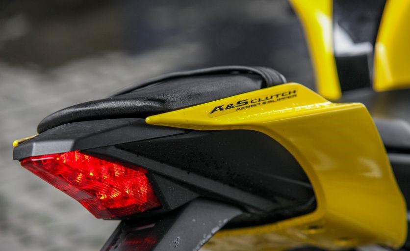 前避震倒叉的性能很好,在后面單震表現(xiàn)也令人滿意,當進入彎道時,前282mm直徑的制動盤可以完全勝任制動工作,并且制動桿的反饋和咬合幾乎達到了超級摩托車的水平,如果需要更多的制動,則可以使用后制動。