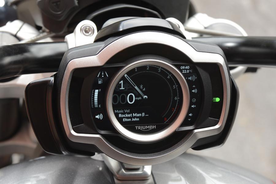 這款摩托車配備了Triumph的最新一代TFT dash,具有藍(lán)牙連接系統(tǒng),該系統(tǒng)允許通過(guò)左側(cè)開(kāi)關(guān)接聽(tīng)電話。