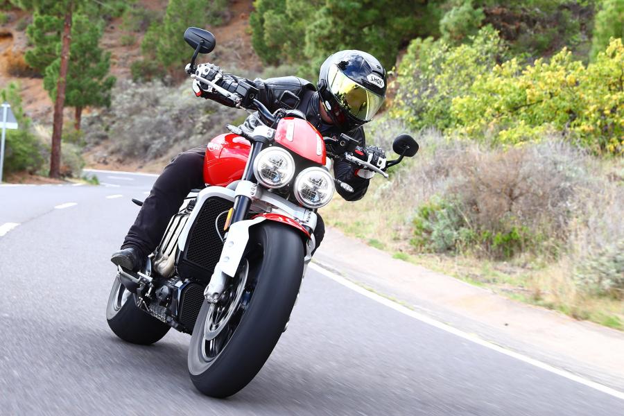 Rocket 3還具有四種騎行模式:雨,路,運(yùn)動(dòng)和騎手,其中騎手是用戶可以自定義的設(shè)置,可讓你關(guān)閉某些功能并根據(jù)自己的喜好調(diào)整設(shè)置。在一天中的大部分時(shí)間里,試駕都處于“運(yùn)動(dòng)”模式,牽引力控制被調(diào)低,油門響應(yīng)是最直接的選擇。在這種情況下,摩托車的電子設(shè)備處于最低干涉狀態(tài),無(wú)需手動(dòng)關(guān)閉TC,對(duì)操控的唯一影響是ABS。