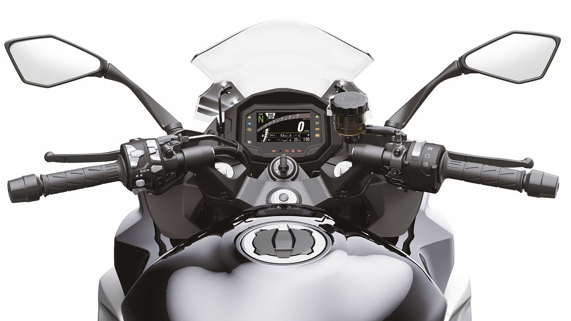 2020款雙出排氣管更換為單出排氣,另外對(duì)擋風(fēng)進(jìn)行了重新設(shè)計(jì),以改善防風(fēng)性能。車架上也進(jìn)行了輕微修改,使車重減輕至233kg。發(fā)動(dòng)機(jī)雖然還是那臺(tái)直列四缸1,043cc發(fā)動(dòng)機(jī),但是更改了凸輪輪廓已以減少行駛噪音,并且達(dá)到了最新的歐5排放標(biāo)準(zhǔn),同時(shí)加入了川崎專有的上下快速換擋器。