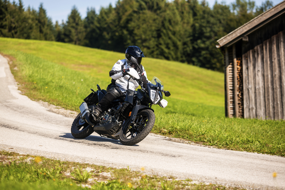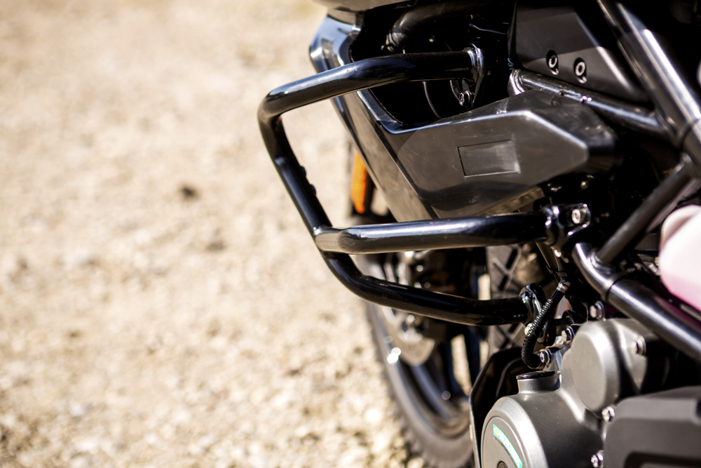 安裝在測試車上的保險杠在印度是標(biāo)準(zhǔn)配置,但在其他地區(qū)則是選裝的,護(hù)手罩在任何地方都是標(biāo)準(zhǔn)配置。入門級車型的高規(guī)格還具有全車LED燈,大燈采用了KTM獨(dú)特的“遮罩”樣式。另外配備一個可雙向調(diào)節(jié)的風(fēng)擋,但是需要使用螺絲刀,調(diào)節(jié)行程有40mm。