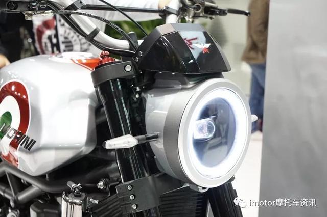 從現(xiàn)場的實車來看,Super Scrambler在去年同類型復古街車Milanno基礎上變得更加時尚了,用上了大熱的鋼絲輪轂和菠蘿胎,坐墊部分也更加簡潔。
