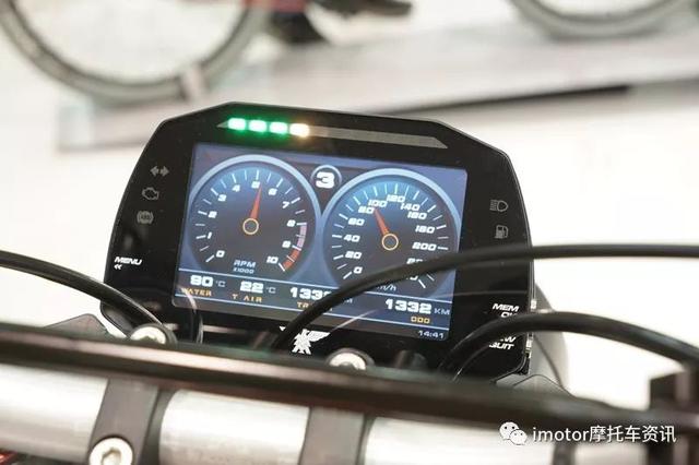 圓形LED前大燈造型清爽,5英寸LCD屏上顯示檔顯和時間。整車座高830mm,對國內(nèi)車友來說還是有點壓力的。采用鋼管編織式車架,車重202kg,輪胎尺寸為前120/70-17后180/55-17。