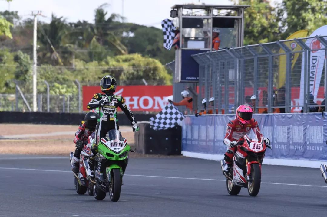 比賽來到最后一圈,44號桿位發(fā)車的Muklada Sarapuech緊咬在198號Awhin Sanjaya身后,但198號車手的線路守得很緊,44號車手雖然速度快但沒有實(shí)現(xiàn)超越,眼看比賽進(jìn)入到12號彎也是全場最后一個彎角,44號車手殊死一搏,生切內(nèi)線想卡住身位,在彎中兩位車手互不相讓,結(jié)果出彎不僅外拋還損失了速度,這讓原本第3位的川崎車手看到機(jī)會,一把油超過去上到第1,最后時刻因?yàn)檐囀掷p斗而絕殺兩位本田車手確實(shí)有些意外,而16號Irfan Ardiansyah最終僅僅排在第5,讓108號Andy Muhammad Fadly在第一回合結(jié)束之后積分暫時領(lǐng)先,相信轉(zhuǎn)天的第二回合比賽,本田車手群將“不會放過”這位川崎車手。
