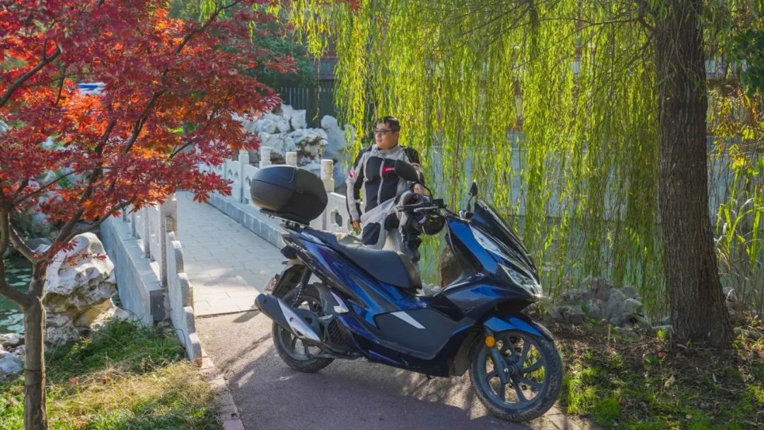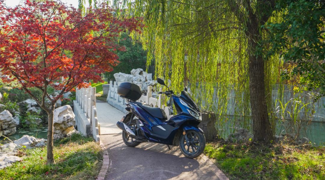 這樣的美景下讓人在瑟瑟冬日也能感受到活力滿滿,泛黃與紅透的樹葉,沒有感覺凄涼之意,反而讓人按奈不住要將美景收入囊中。于是,我們來了安排了一場瘦西湖與PCX150、CBF190TR的完美偶遇。