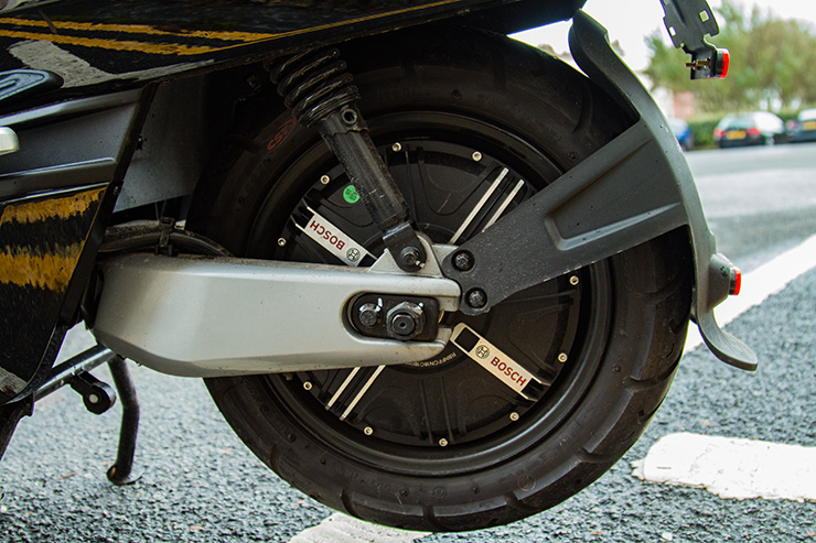 Niu沒(méi)有變速箱,電機(jī)直接安裝在后輪中,顯然也沒(méi)有排氣。電動(dòng)機(jī)是一個(gè)3Kw的Bosch電機(jī),僅此而已,操起來(lái)作非常簡(jiǎn)單。