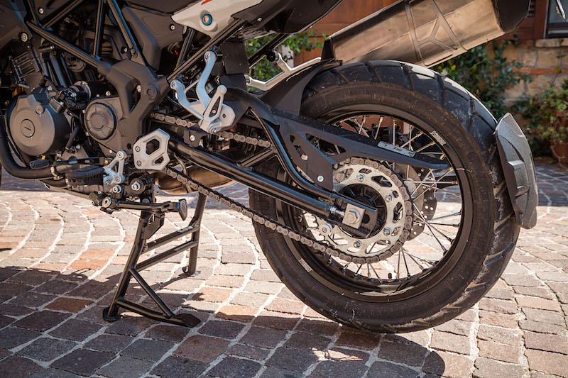 Benelli的前叉是不可調(diào)節(jié)的,但這并不是一件壞事,起碼保持了前輪的牢固。在后部,只有一個中央安裝的避震器,其作用類似于KTM的PDS系統(tǒng),而不是使用多連桿機(jī)構(gòu)。彈簧上有預(yù)緊力調(diào)節(jié)裝置,壓縮和預(yù)緊力調(diào)節(jié)裝置可確保你的騎行方式和重量達(dá)到最佳設(shè)置。懸架在出廠時就設(shè)置的比較均衡,該懸架恰好適合我們穿越的地形,并始終對后輪進(jìn)行適當(dāng)?shù)目刂啤?/p>