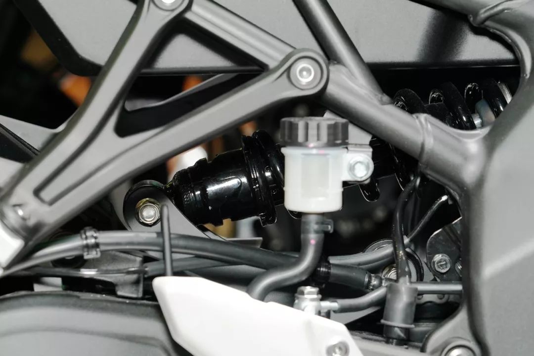 新 ZX-25R 的另一個特點,是配備了高級別的懸掛系統(tǒng):新車將裝備來自 Showa 昭和的、叉芯口徑為37 mm 的 SFF-BP(Separate Function Fork + Big Piston,獨立功能前叉-大活塞)倒立式前叉。這套前叉同時結合了 Showa 的 SFF 和 BPF 概念,同步提供了一個賽道上的高性能和日常騎行的可用性。后減震方面,接近水平角度聯(lián)接的后連桿設計、為后懸掛提供了一個漸進的特點,有助于車輛以 SuperSport 超級運動風格的騎行。而這種級別的前、后懸掛系統(tǒng),兩者都是在現(xiàn)行的 250 cc 級別車型中首次亮相。