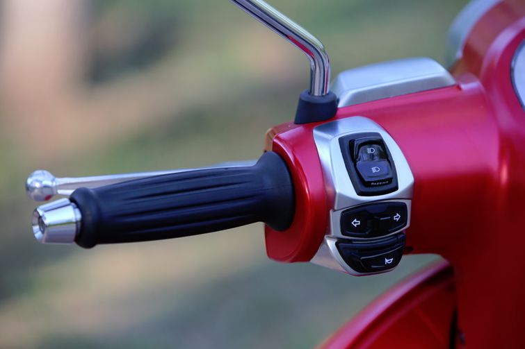 Django 150在細(xì)節(jié)方面也有許多值得留意的設(shè)計(jì)。因?yàn)镈jango 150是長明燈照明設(shè)計(jì),所以右部以往大燈開關(guān)總成位置設(shè)置了雙閃警示燈開關(guān);左部開關(guān)總成也是沿用傳統(tǒng)布局,遠(yuǎn)、近光轉(zhuǎn)換開關(guān)并帶有超車燈功能;Django 150的圓形組合式儀表盤則兼具復(fù)古與現(xiàn)代,上方的指針式時(shí)速表有著公里和英里兩種刻度,中間的液晶儀表則顯示時(shí)間、氣溫、油量、里程、保養(yǎng)周期等實(shí)用信息,下方的5個(gè)“圓點(diǎn)”則是遠(yuǎn)光燈提示、轉(zhuǎn)向燈提示、油量提示和設(shè)置按鍵,整個(gè)儀表的橢圓造型也符合車身整體的圓潤風(fēng)格。