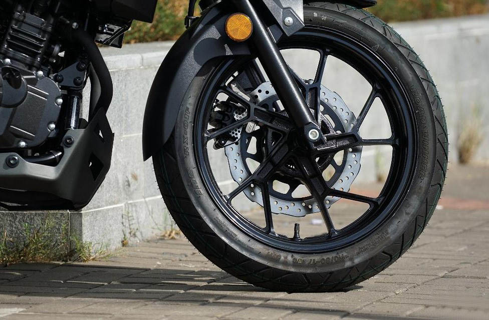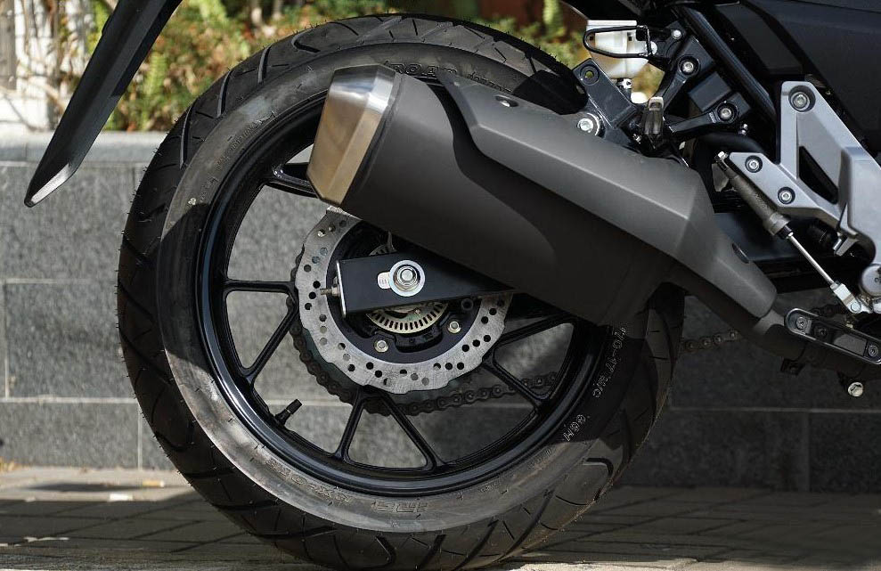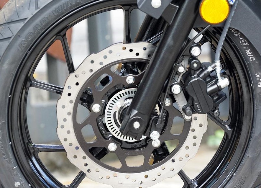 制動(dòng)方面,雙通道博世ABS防抱死系統(tǒng),前制動(dòng)為290mm單盤(pán)+雙活塞NISSIN卡鉗,后制動(dòng)為240mm單+盤(pán)單活塞NISSIN卡鉗。