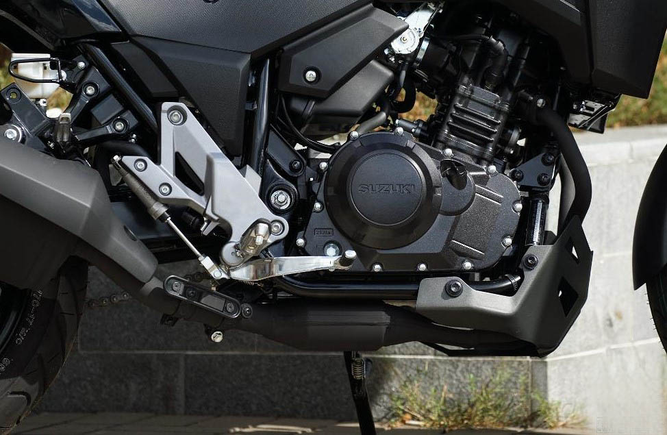 DL250和GSX-250R的動(dòng)力心臟都是一樣,來(lái)自2013年的GW250,排氣量248cc的水冷并列雙缸發(fā)動(dòng)機(jī),壓縮比11.5:1,屬于長(zhǎng)沖程設(shè)計(jì),偏重低轉(zhuǎn)扭力輸出。最大功率18.4kW/8000rpm,最大扭矩23.4N•m/6500rpm,0-100km/h加速11秒。