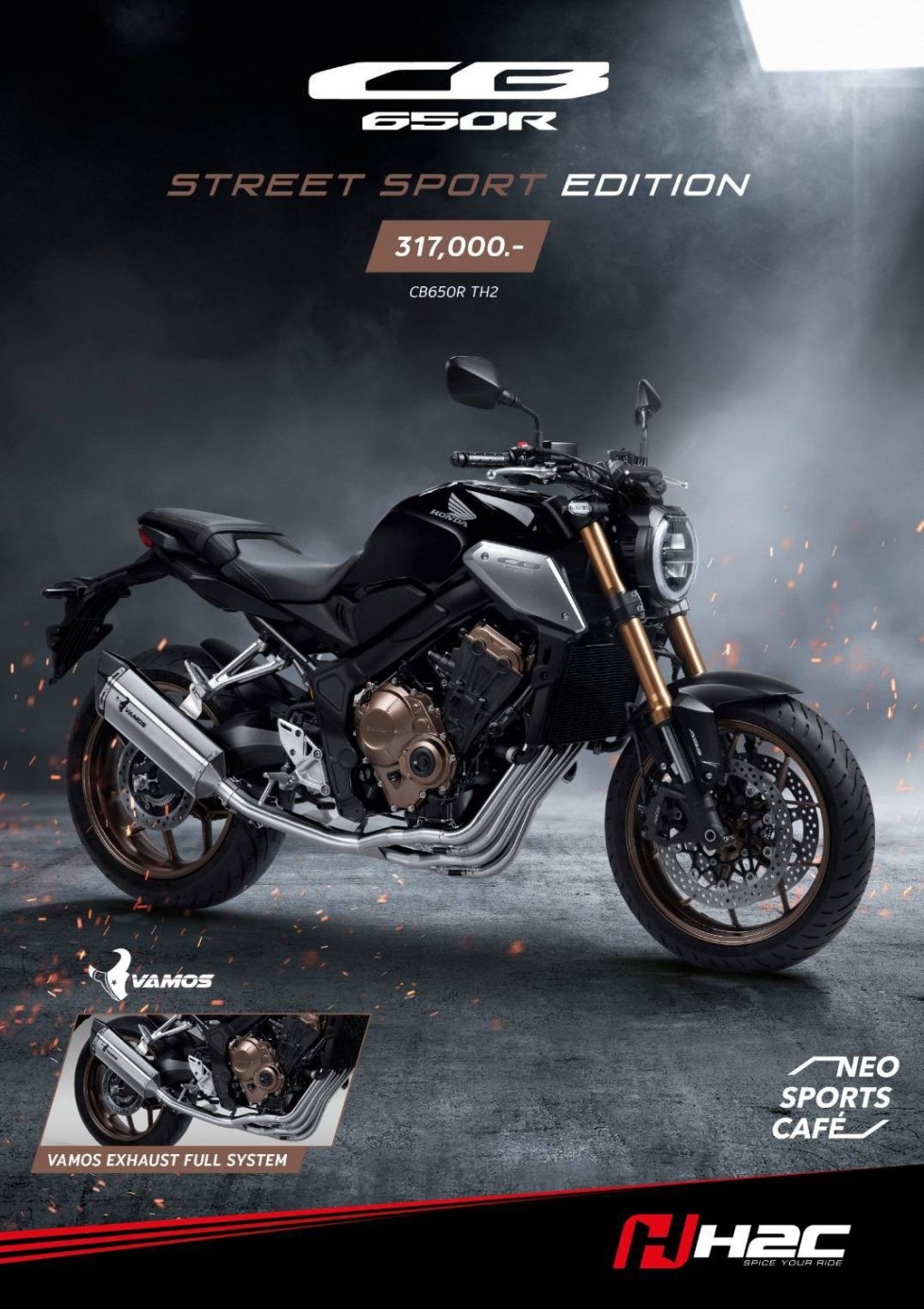 然后就是,本田CBR650R Sport Racer和CB650R Sport Racer。除了設(shè)計(jì)保持不變外,兩款車型均配備了Vamos Full System排氣裝置,這兩臺(tái)特別版分別在泰國限量發(fā)售50臺(tái)。