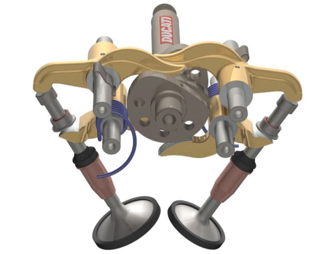 意大利經(jīng)典品牌杜卡迪,有個特征與其他品牌完全不同,那就是Desmodromic氣門機構(gòu)。這種機械氣門機構(gòu)的優(yōu)勢是:絕大多數(shù)四沖程發(fā)動機都依賴于彈簧來閉合氣門,但隨著發(fā)動機轉(zhuǎn)速的提高,特別是高轉(zhuǎn)速的賽車型發(fā)動機中,彈簧閉合氣門的時間變得很苛刻,從而經(jīng)常出現(xiàn)氣門無法精確地按照凸輪形狀來運轉(zhuǎn)的情況,這導(dǎo)致了發(fā)動機性能的下降。Desmodromic氣門機構(gòu)由于取消了彈簧,改為直接機械閉合氣門,從而實現(xiàn)了發(fā)動機全轉(zhuǎn)速范圍內(nèi)的精確氣門動作,能夠有效防止發(fā)動機高轉(zhuǎn)速時出現(xiàn)“氣門漂浮”現(xiàn)象。