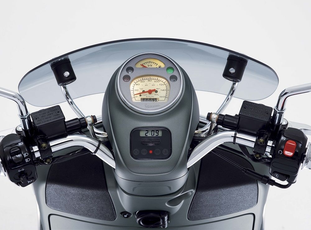 新款Vespa Sei Giorni特別版的設(shè)計(jì)與經(jīng)典的記憶一脈相承,車頭大燈位于前輪擋泥板上方,外露的金屬車把保持簡(jiǎn)約的風(fēng)格,精巧的擋風(fēng)板,優(yōu)雅的圓形儀表板與白色時(shí)速表底色等細(xì)節(jié),彰顯品牌獨(dú)特的設(shè)計(jì)美學(xué)。