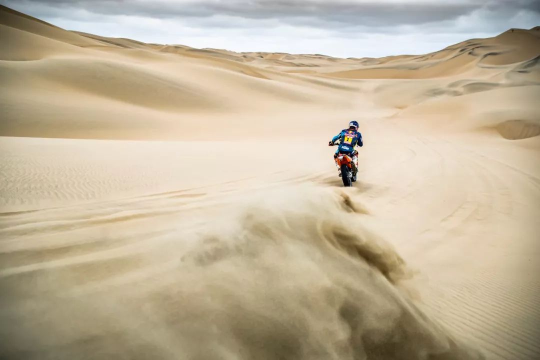 最后四個賽段依然是沙漠,令人視覺疲勞的滿眼黃色,高低起伏暗藏玄機的大小沙丘,還未到終點,每一步都可能改寫最后的結(jié)局,穩(wěn)?。猿?!