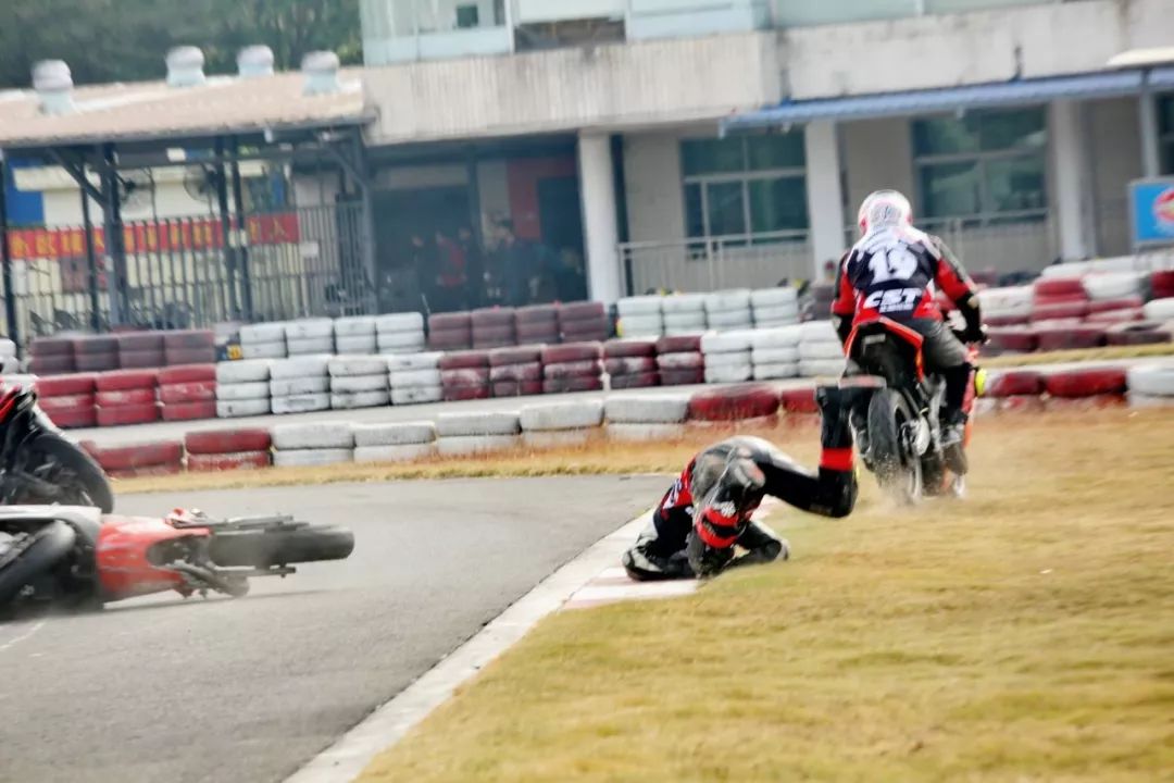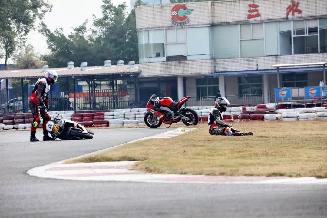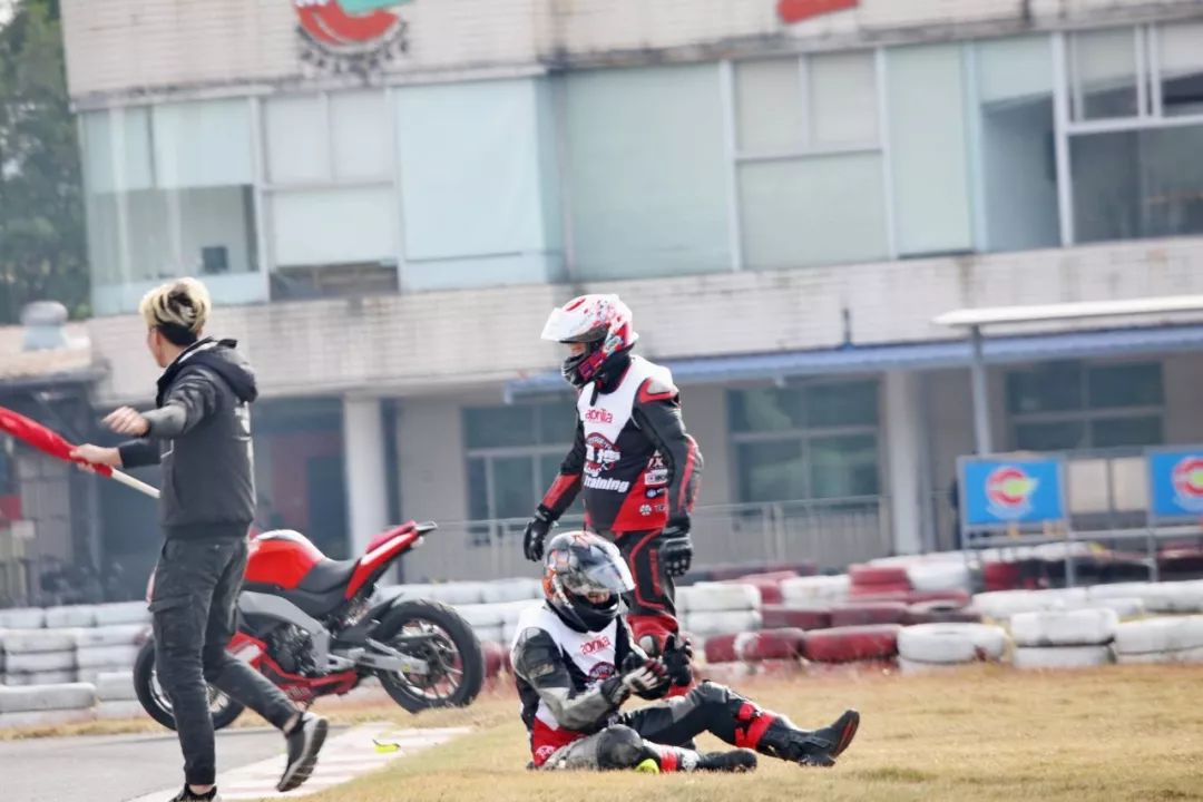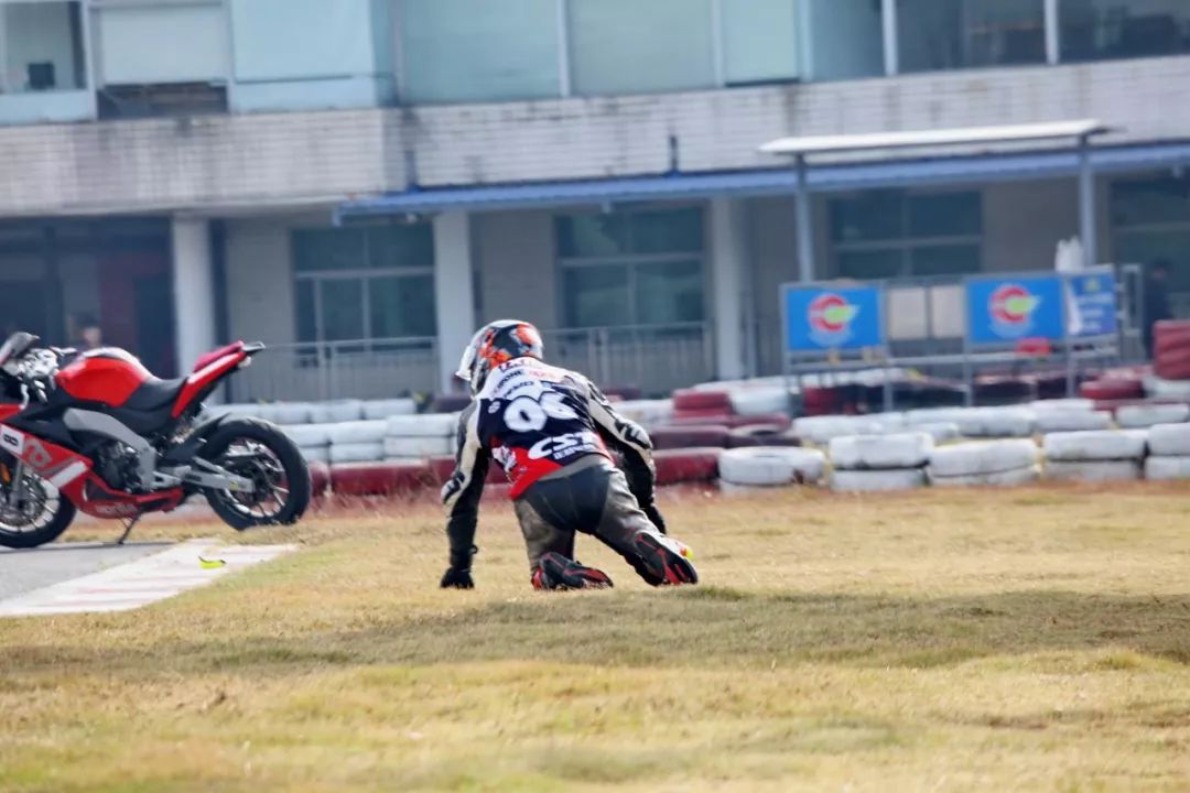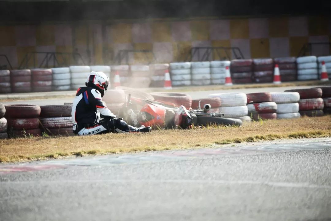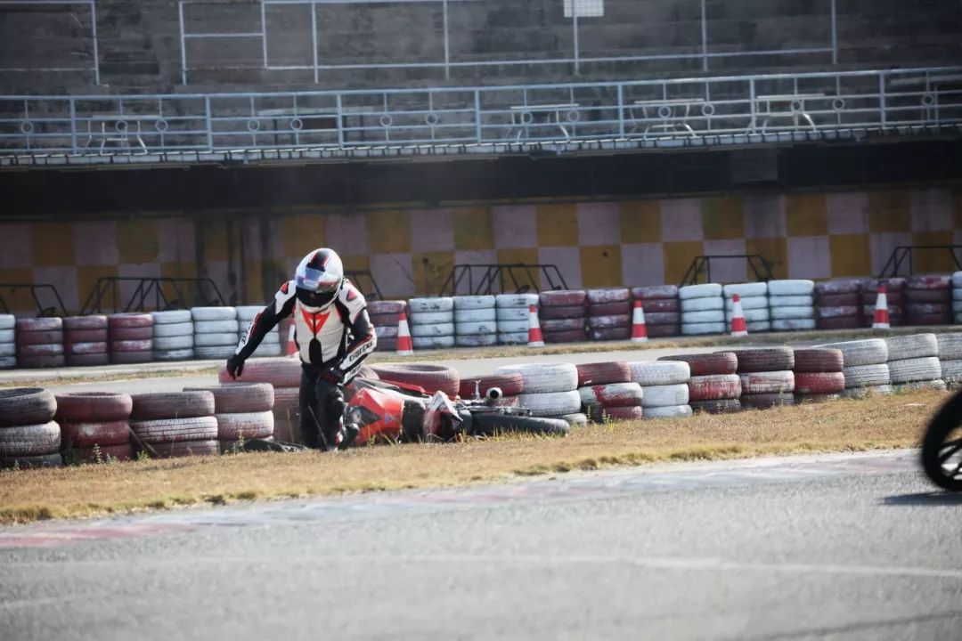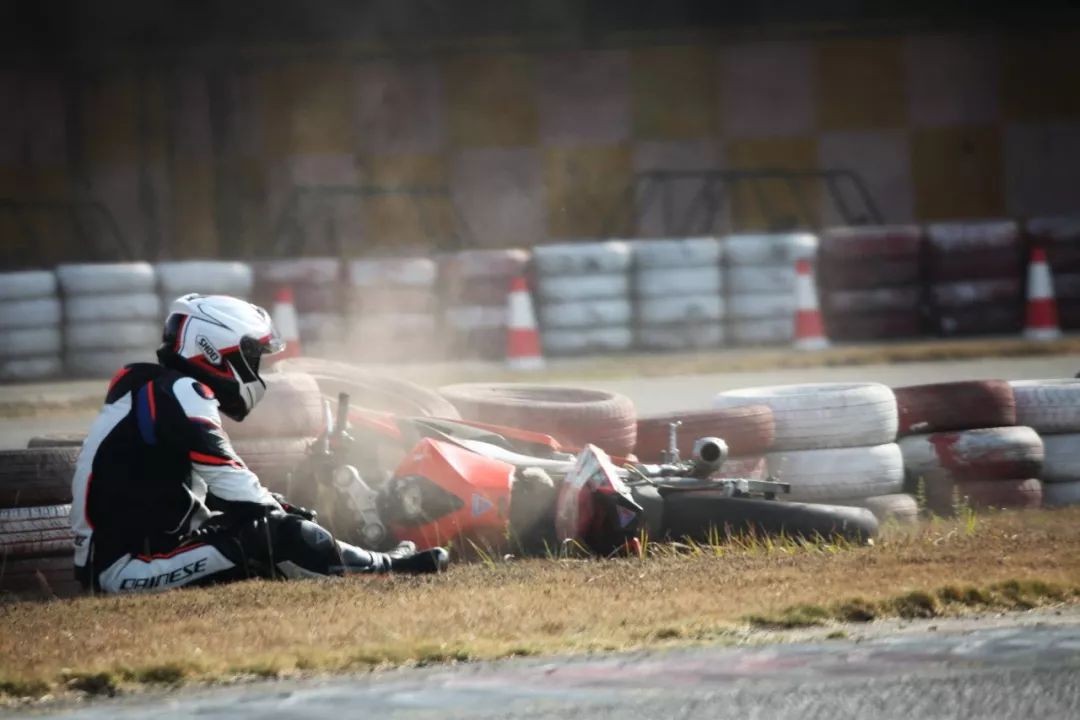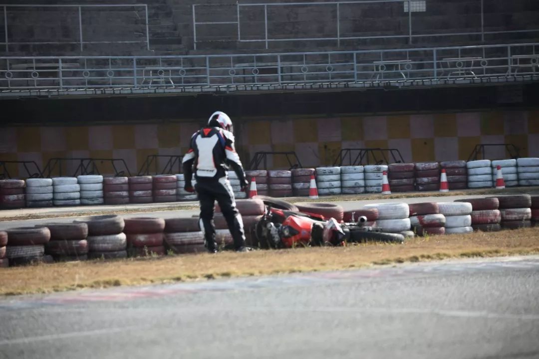 下面的圖片、賽道實(shí)踐練習(xí)的時(shí)候,發(fā)生了多次的摔車(chē)意外。由于速度并不高、且各項(xiàng)防護(hù)裝備與設(shè)施齊全,學(xué)員們基本就是尷尬一笑、又重新站了起來(lái)。