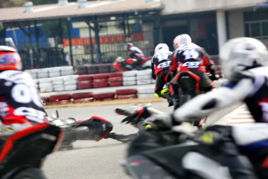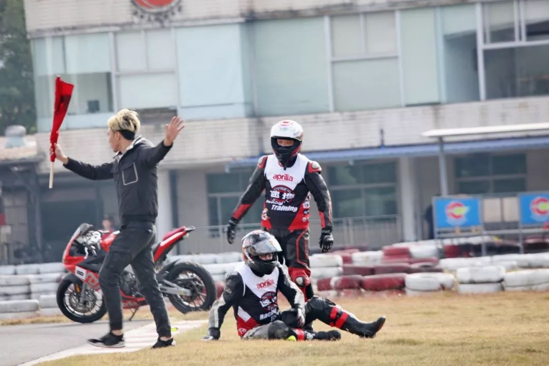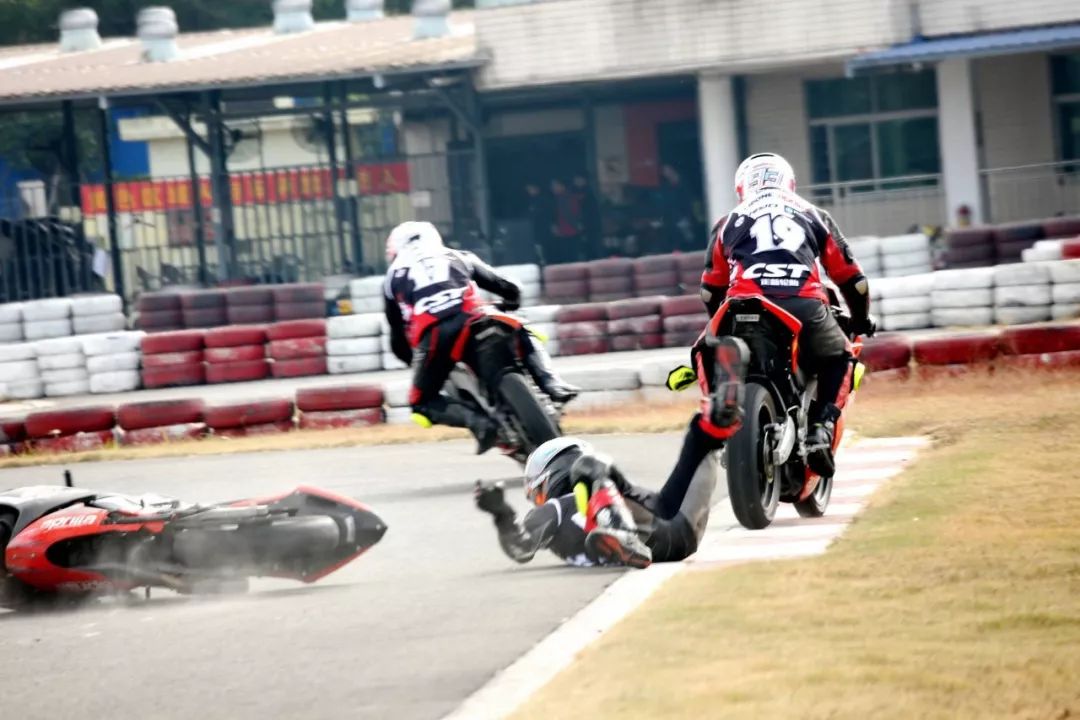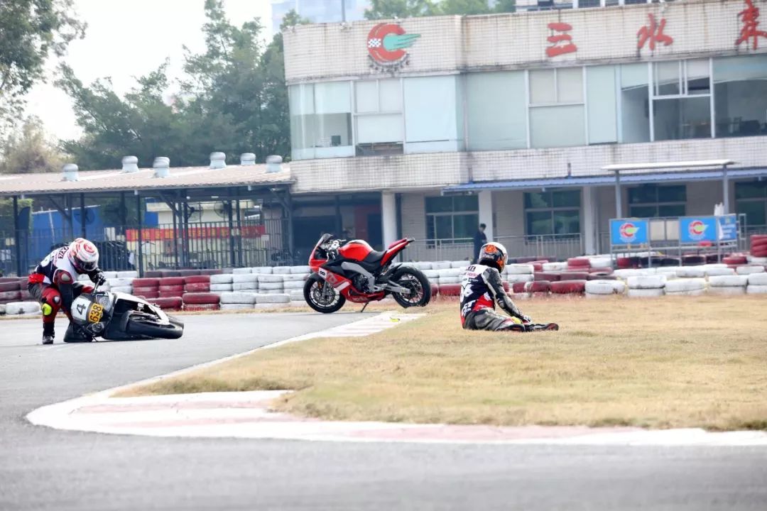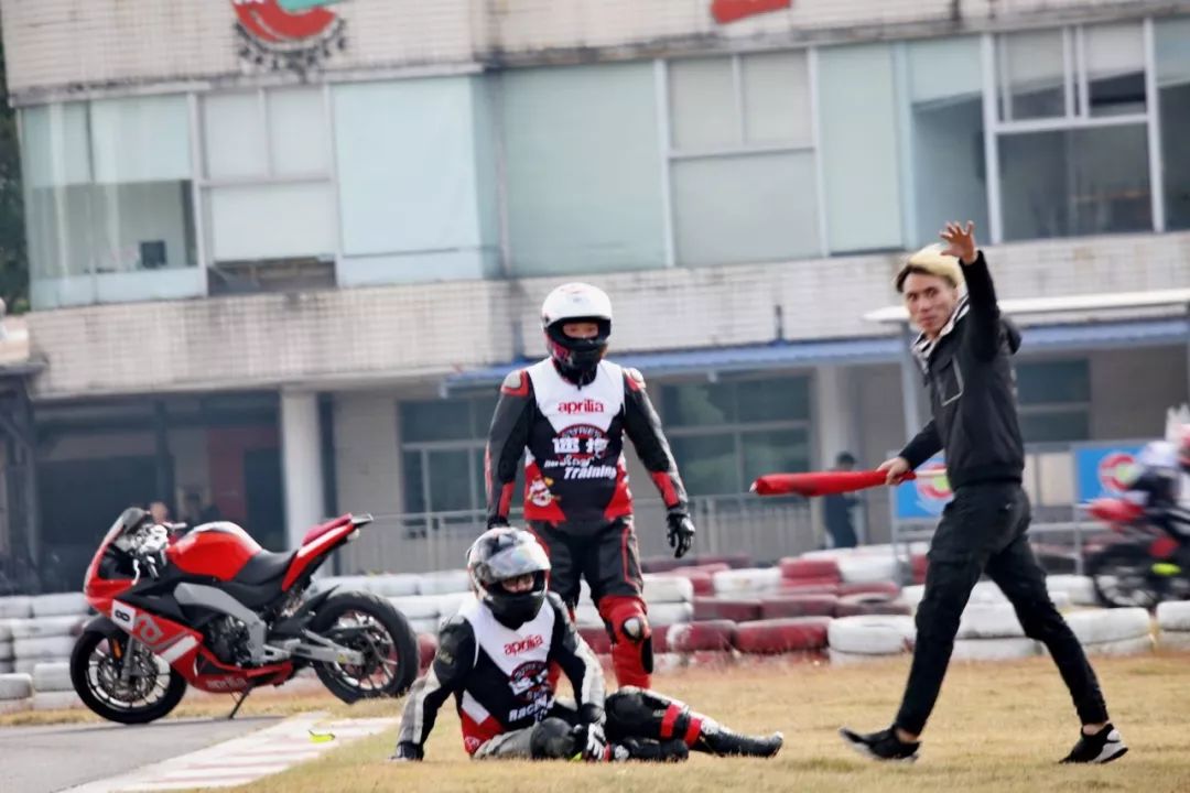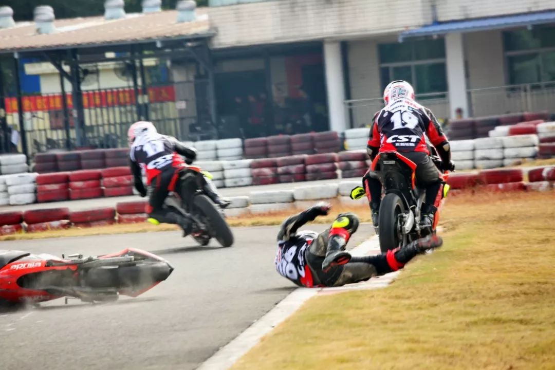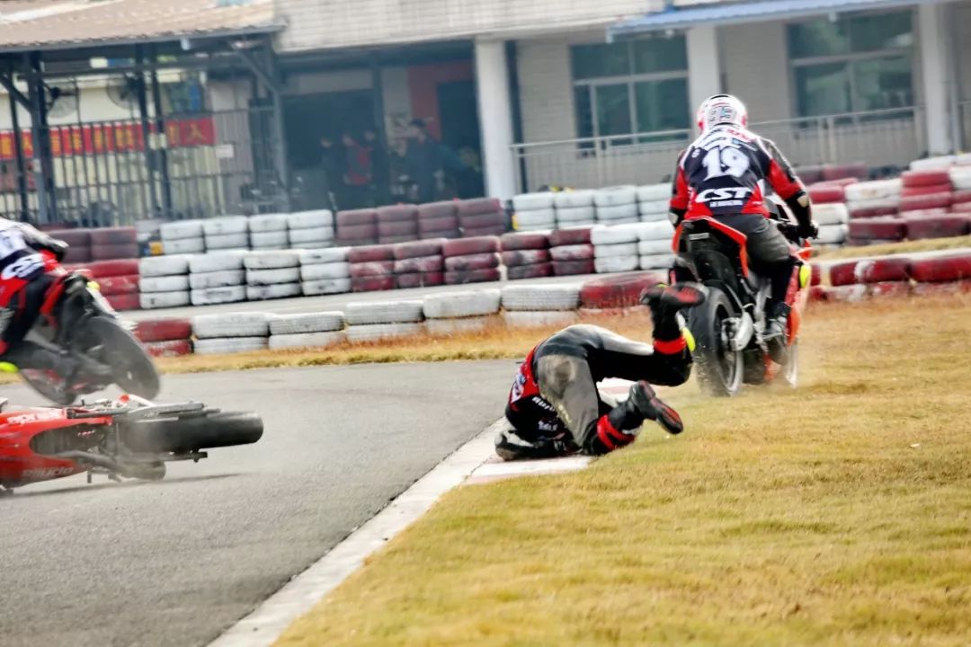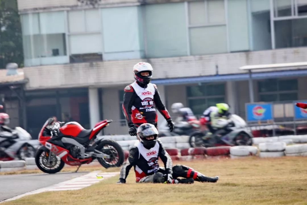 下面的圖片、賽道實(shí)踐練習(xí)的時(shí)候,發(fā)生了多次的摔車(chē)意外。由于速度并不高、且各項(xiàng)防護(hù)裝備與設(shè)施齊全,學(xué)員們基本就是尷尬一笑、又重新站了起來(lái)。
