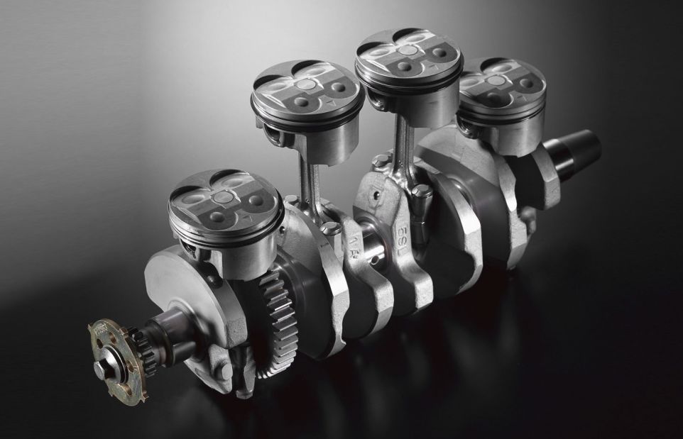 沿著這一思路,雅馬哈走得更遠(yuǎn),這就是十字曲軸。2009年YZF-R1引入了90°曲軸,點(diǎn)火次序是270º—180º—90º—180º,與常規(guī)并列四缸發(fā)動(dòng)機(jī)的點(diǎn)火次序180º—180º—180º—180º大不相同。需要指出的是,引入十字曲軸并非為了榨取更高的峰值動(dòng)力,而是強(qiáng)化動(dòng)力的線性輸出。由于每只活塞和連桿都處于不同的運(yùn)動(dòng)位置,這樣,旋轉(zhuǎn)時(shí)產(chǎn)生的慣性扭矩相互抵消,易于騎手準(zhǔn)確掌控發(fā)動(dòng)機(jī)的動(dòng)力輸出。