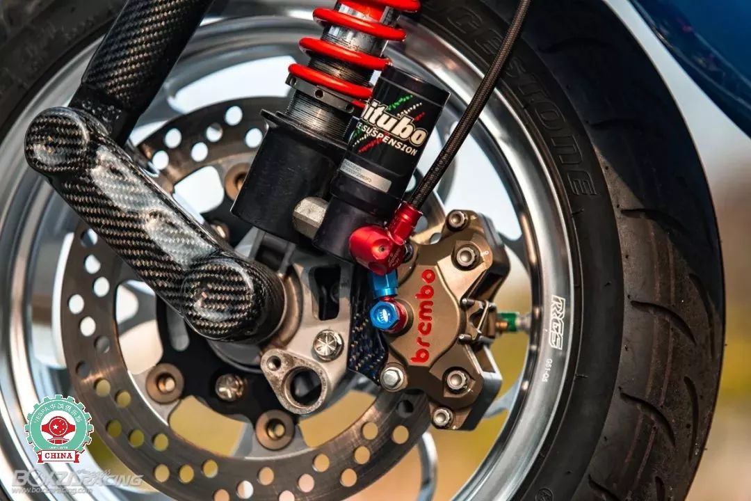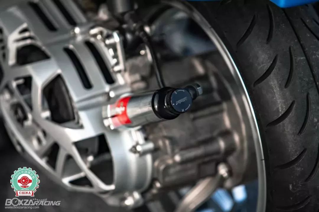 前懸掛系統(tǒng)采用了單邊支撐式雙避震機(jī)設(shè)計,前避震機(jī)采用了碳纖維桶身,后避震機(jī)則是機(jī)簧一體并帶有氮?dú)馄康谋苷稹?/span>