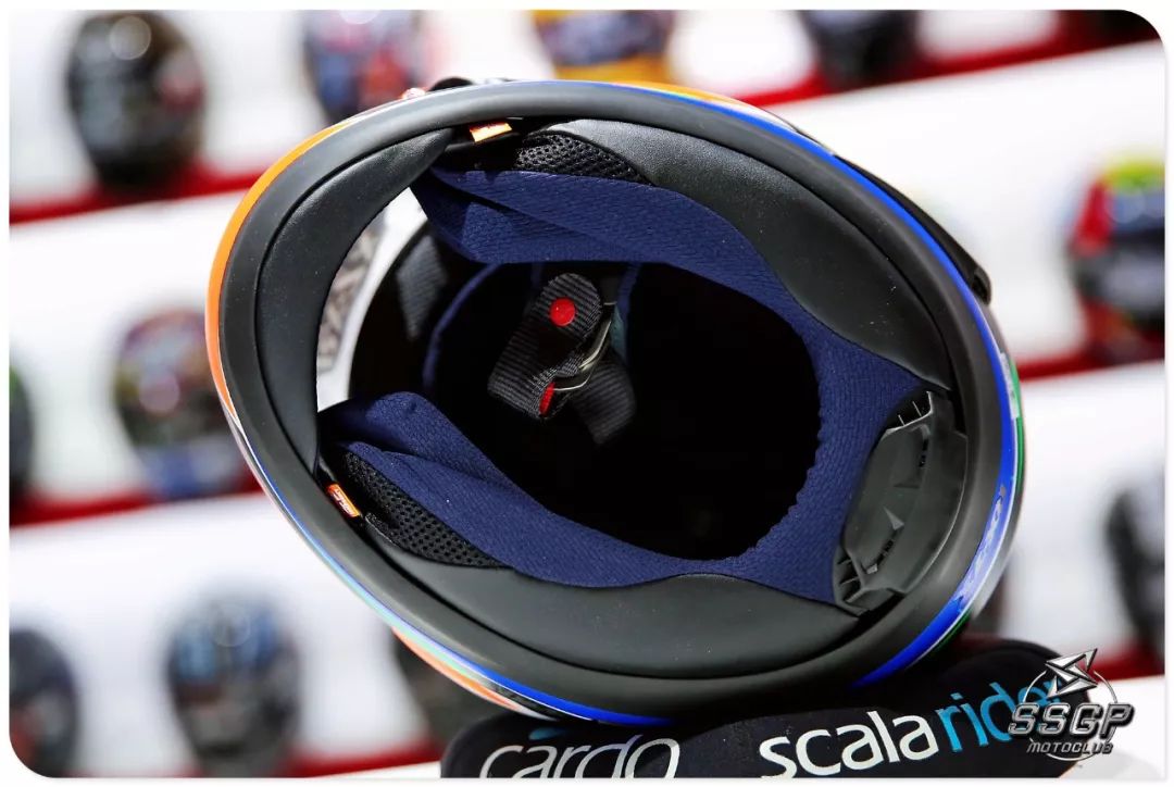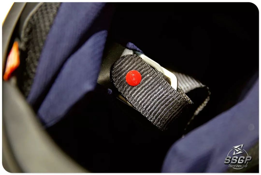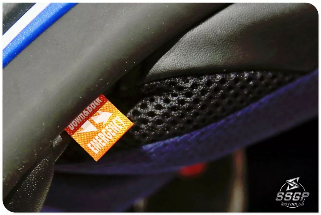 快速摘除裝置,當意外發(fā)生時保護車手頸部的安全裝置。急救需要緊急摘除頭盔時,拉動專用絲帶的簡單操作,便可將可能受傷的頸部所受的負擔降低到最小程度,輕松摘除頭盔。