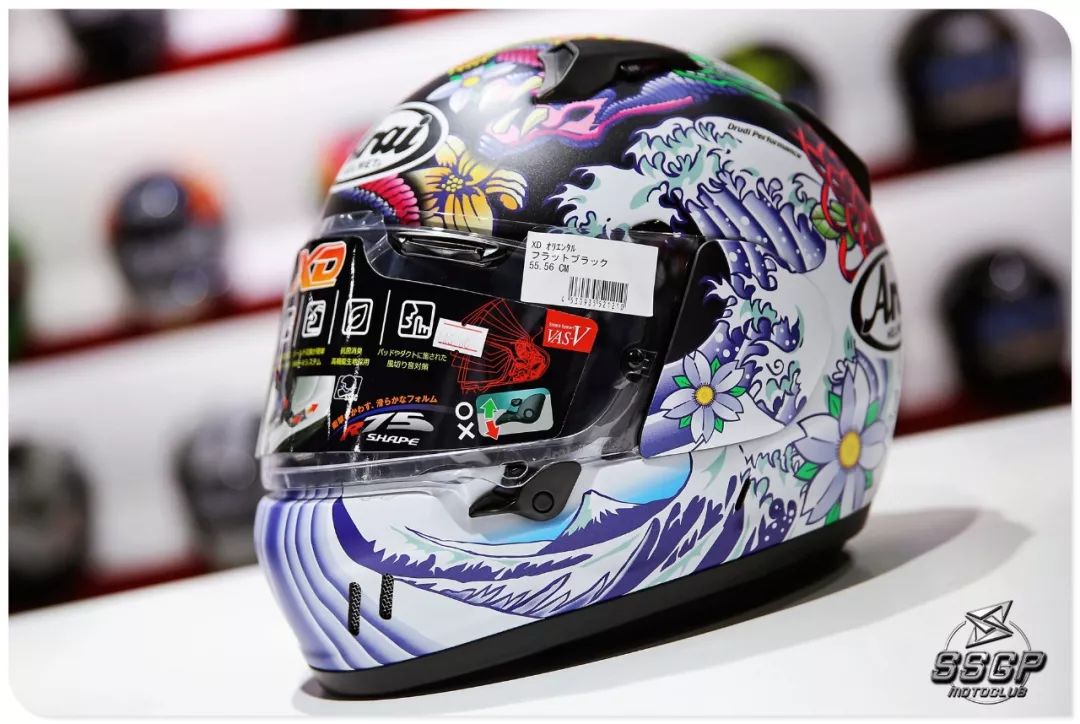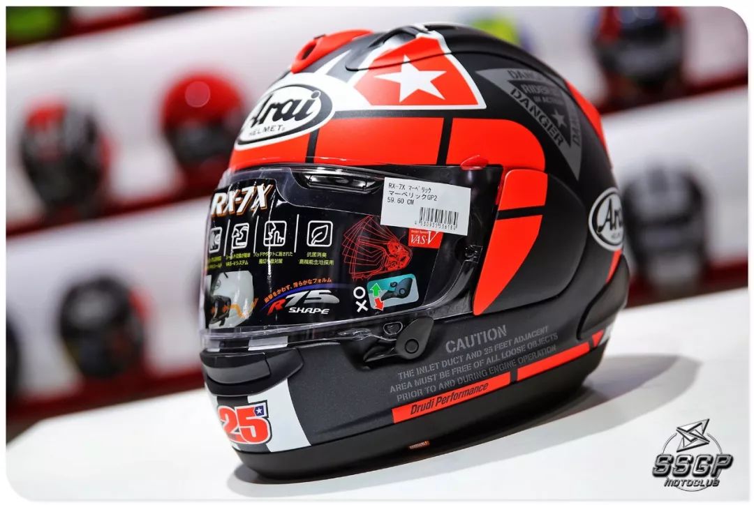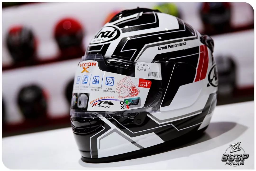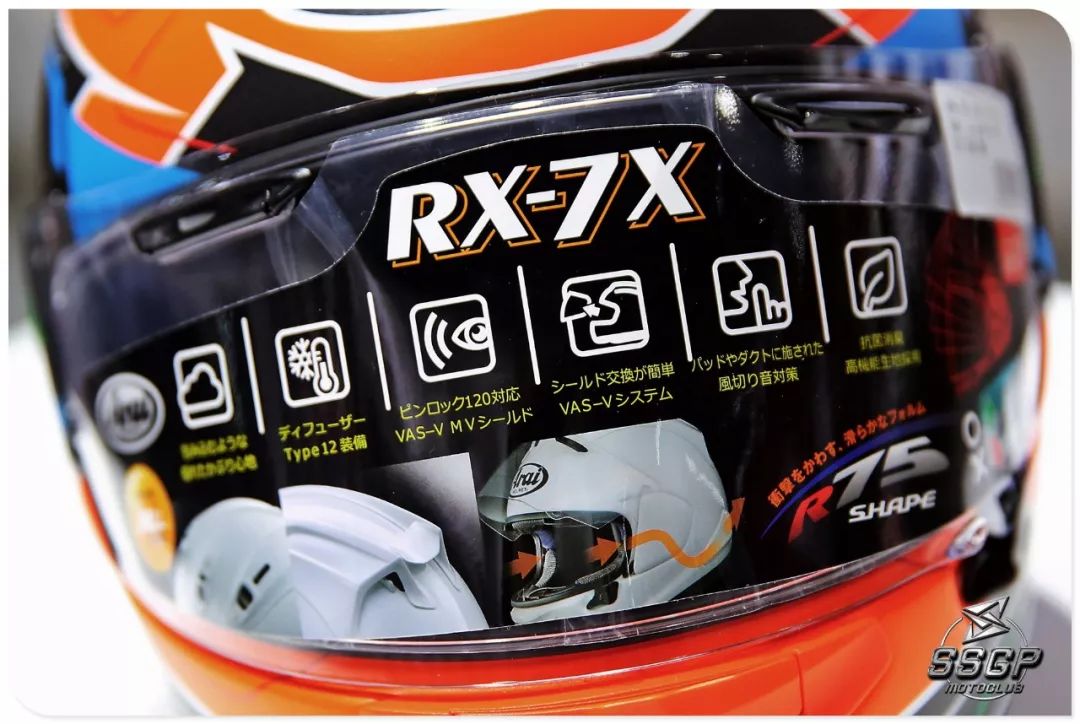 每頂頭盔上都有出現(xiàn)的 R75 醒目標志,是 ARAI 的重點之一……