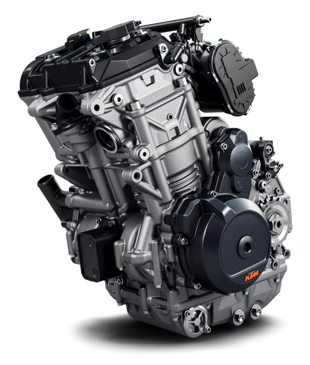 Duke 790 搭載一副工廠編號為 LC8c 的水冷直列兩汽缸、DOHC 每汽缸四汽閥的發(fā)動機,汽缸組與曲軸箱上部采用了一體成型的設(shè)計,組裝式的凸輪軸(常見的凸輪軸一般采用鍛造一體成型),排汽量 799 cc,配備了六檔的變速齒輪箱,符合歐四的排放標(biāo)準(zhǔn),最大動力輸出 77 kw(105 匹。不同國家/地區(qū)市場的版本略有差異)。