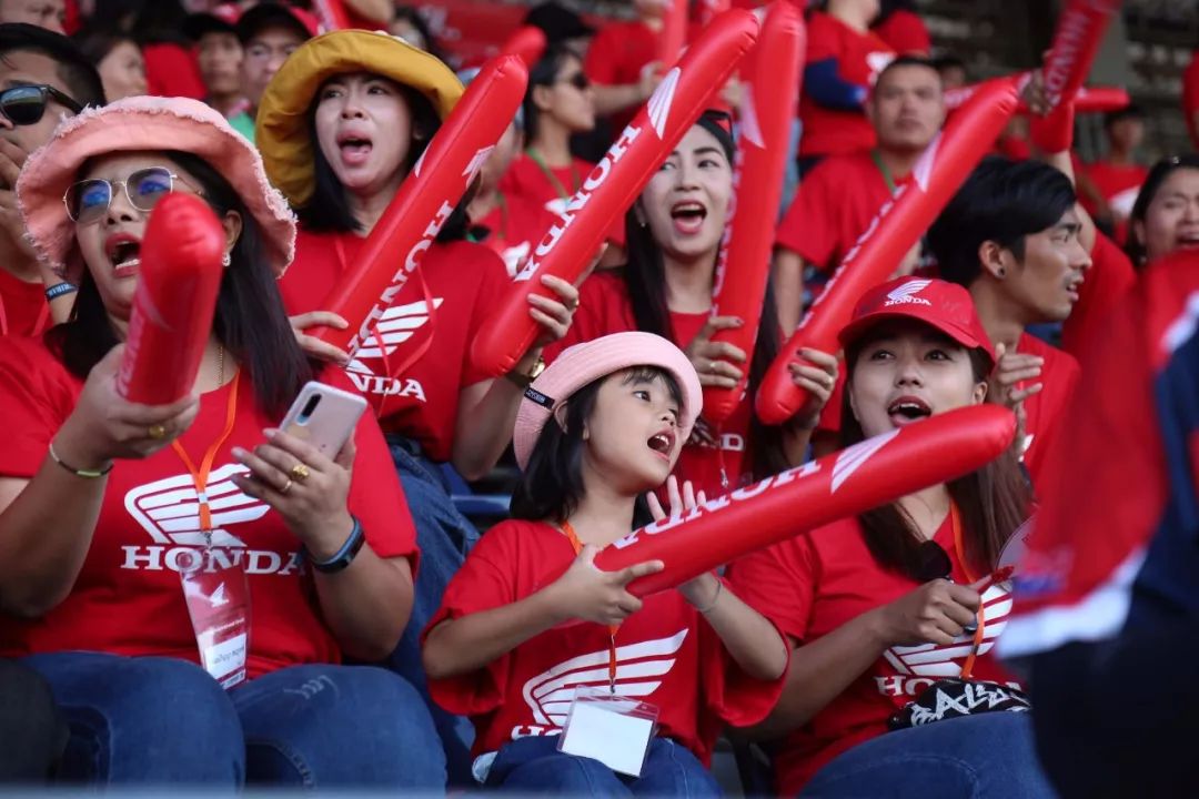 從1949年的DREAM Model D推出,本田用了48年(1997年)才完成1億臺(tái)摩托車產(chǎn)量的目標(biāo),到2億臺(tái)用了11年(2008年),到3億臺(tái)用了6年(2014年),而從3億臺(tái)到4億臺(tái)的目標(biāo)卻僅僅用了5年時(shí)間。如今全世界燃油摩托車年產(chǎn)量約為6000萬(wàn)臺(tái),本田的生產(chǎn)量就占了34%,也就是說(shuō),每年全世界生產(chǎn)摩托車中有三分之一都出自本田,摩托界老大哥可以說(shuō)當(dāng)之無(wú)愧。同時(shí)本田在許多國(guó)家都有非常高的市場(chǎng)占有率,以亞洲為例,占比最高的分別為泰國(guó)、越南和印度尼西亞,其市場(chǎng)占有率分別達(dá)到了81%、77%和75%(2018年數(shù)據(jù))。在今年11月底筆者曾去ARRC泰國(guó)武里南站觀賽,現(xiàn)場(chǎng)的本田粉絲們給筆者留下很深的印象。