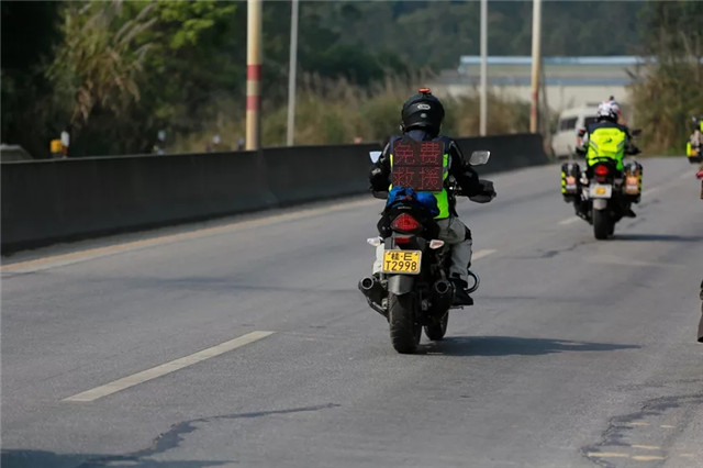 去年春運,來自廣東、廣西、湖南等地的21位愛心騎士,分為5支救援小組,攜帶藥品、維修工具、指示牌、安全盔等物資,集中在國道G321三水至梧州段,為摩托返鄉(xiāng)人員提供安全服務(wù)。