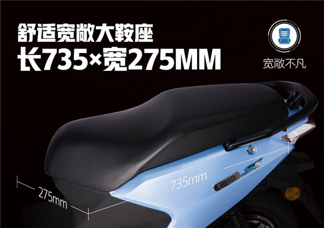 長735寬275mm超寬敞大鞍座,騎乘更舒適。