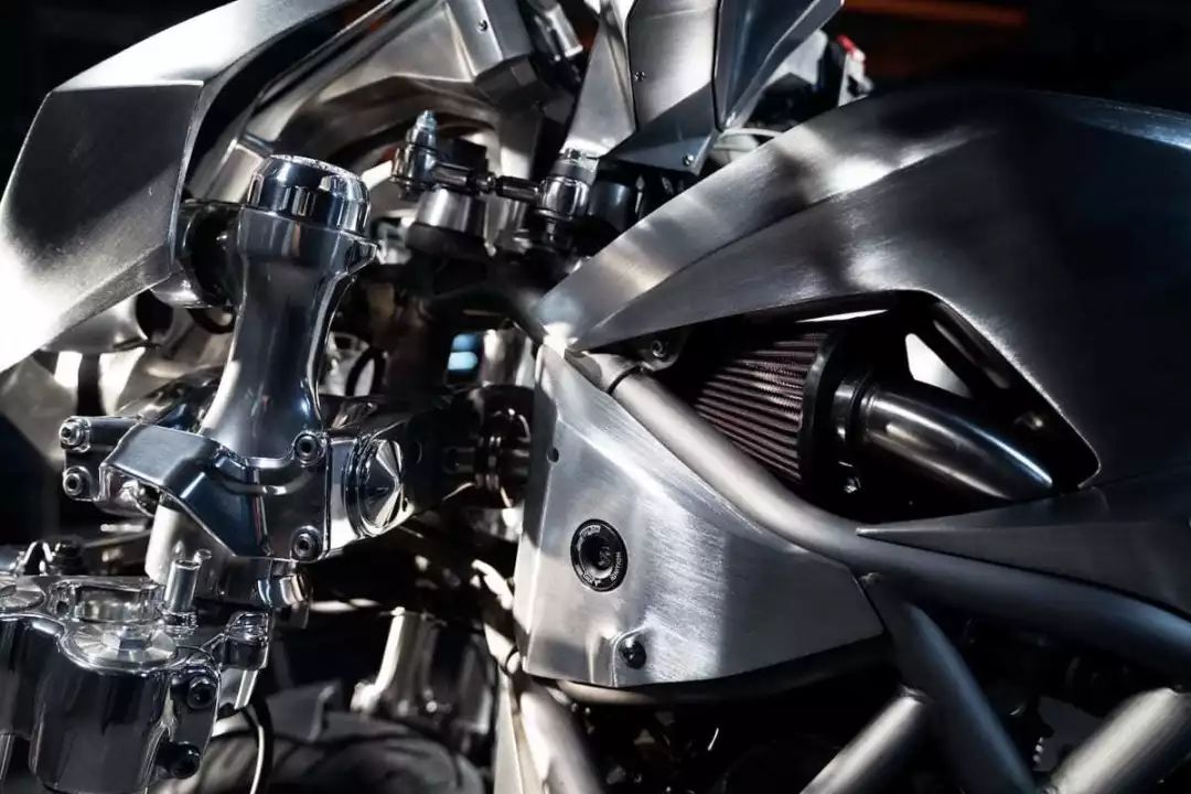 這輛GOC制作的Niken在外觀上有了鮮明的改變,因其俐落的性能表現(xiàn),GOC使用鋁制的外殼取代了所有塑料車殼,并以不上漆的手法保留金屬的原色,能看到表面的發(fā)絲紋,有如電影「魔鬼終結(jié)者」中終結(jié)者的全金屬骨骼形象,賦予Niken更加鋒利、具侵略性的視覺風(fēng)格。