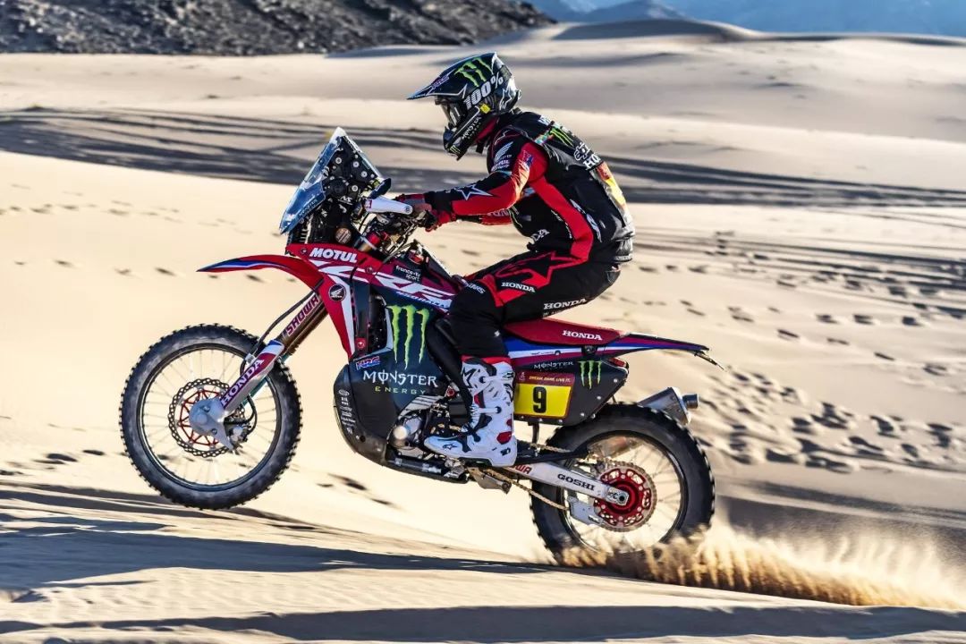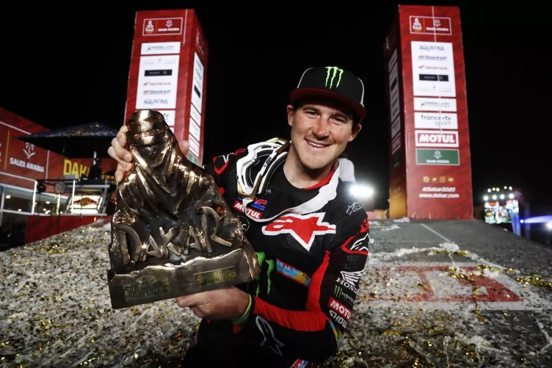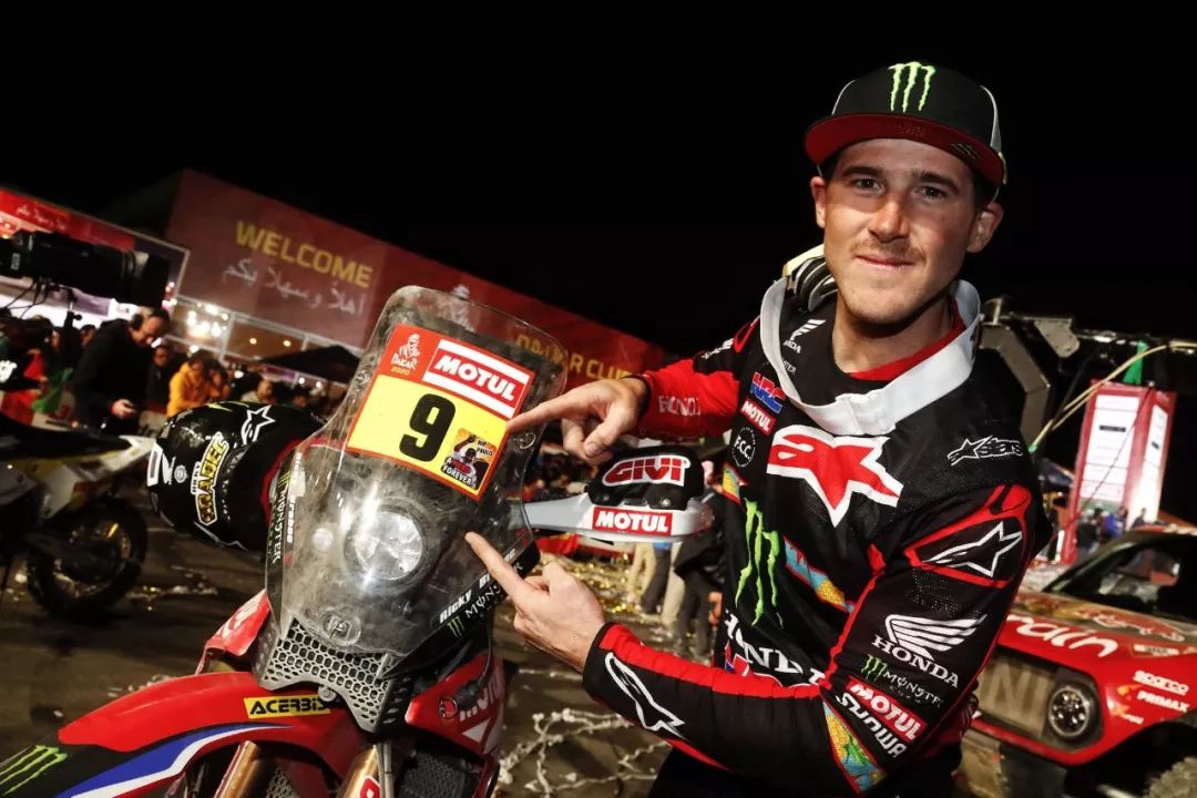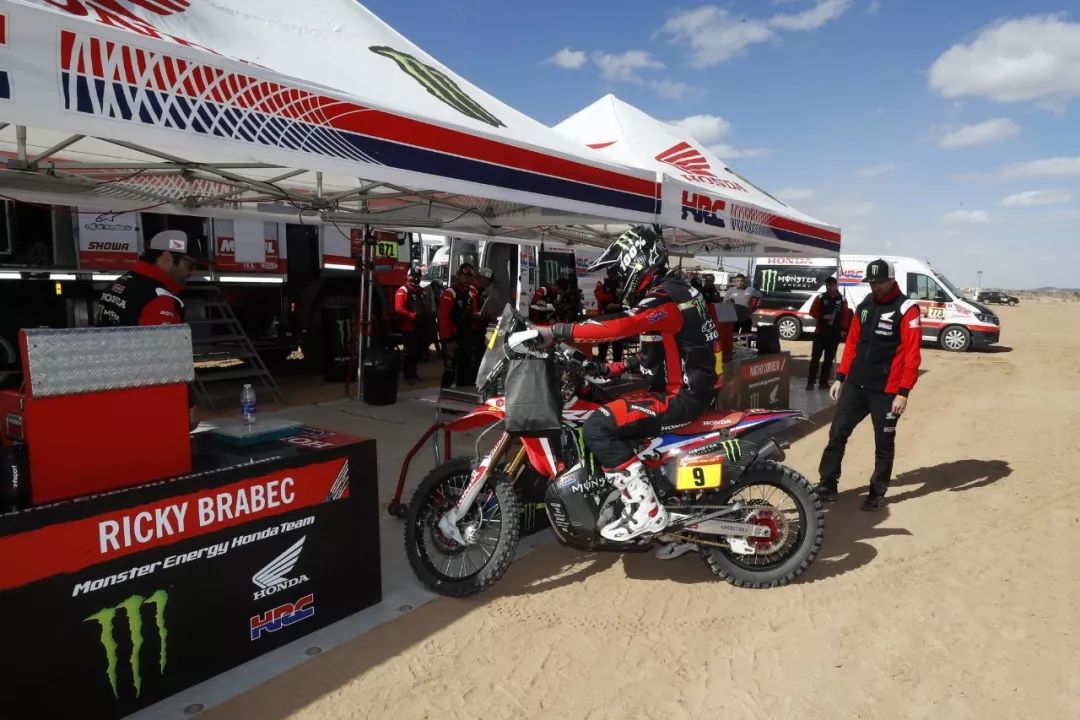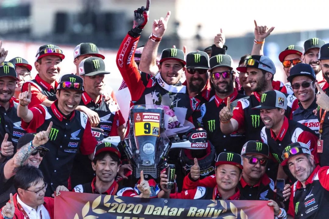 一月 17 日,2020' 達(dá)喀爾拉力賽第 12 賽段結(jié)束之后,HRC(Honda Racing Corp,Honda 賽車公司)車隊(duì)的 9 號(hào)車、美國(guó)車手巴拉貝(Ricky Brabec)奪得了摩托車組的冠軍。